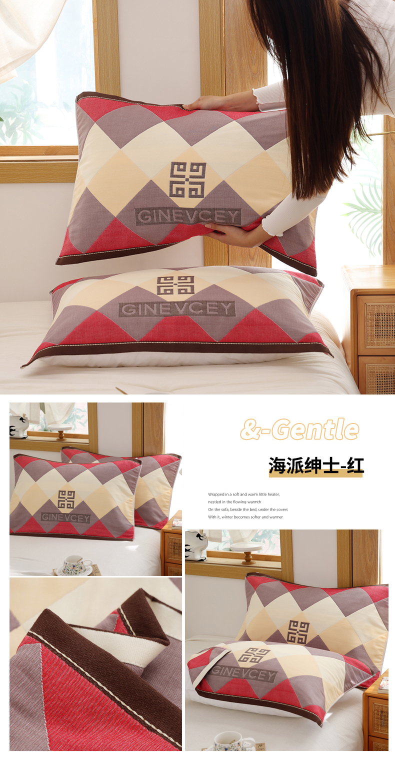 当前位置: 91家纺网 > 商品网购 > 床上用品 > 枕巾垫巾 > 朴尔家纺-毛巾被 2026新款格致系列全棉纯棉加厚六层纱布枕巾 海派绅士-红