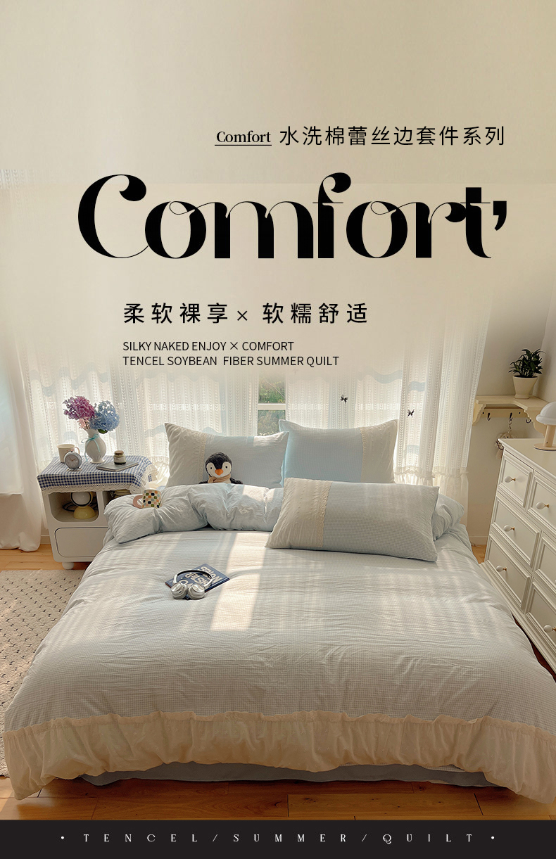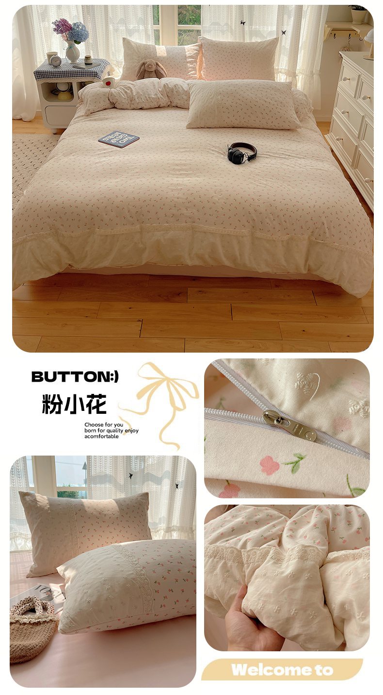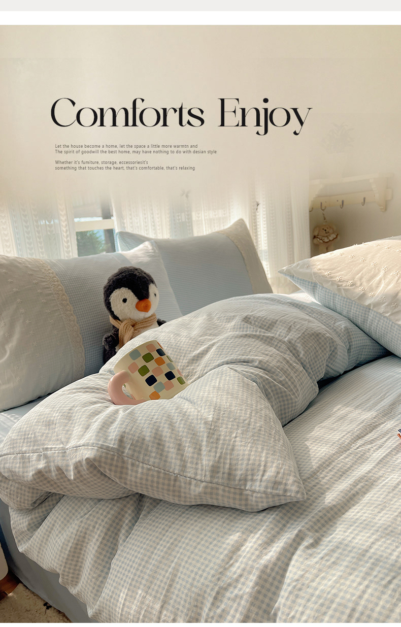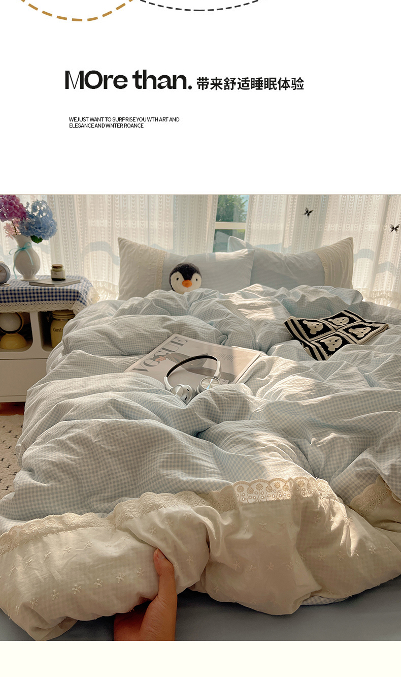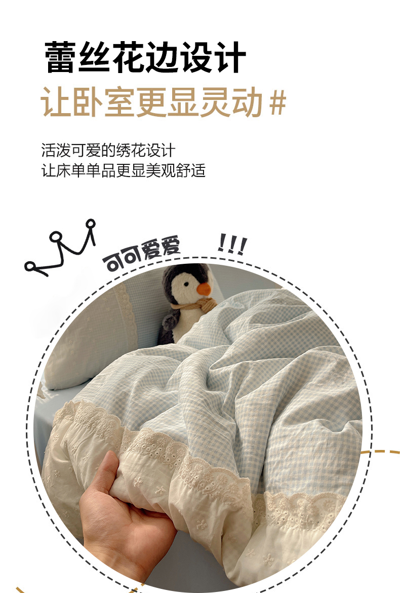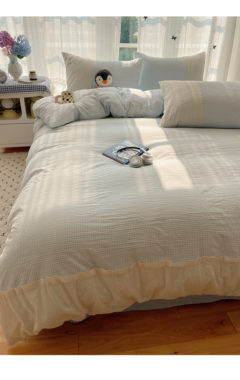 当前位置: 91家纺网 > 商品网购 > 床品套件 > 四件套 > 水洗棉四件套 > 韩巢家纺 2026新款少女心蕾丝花边款四件套 蓝小格【蕾丝花边款】