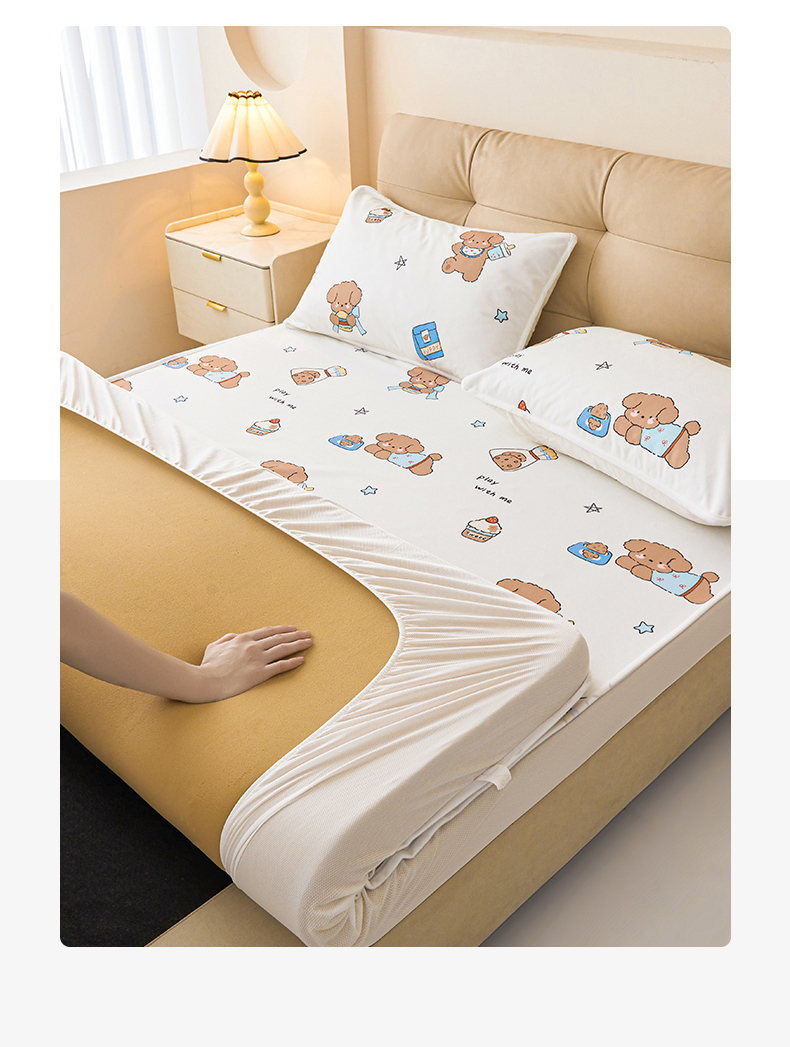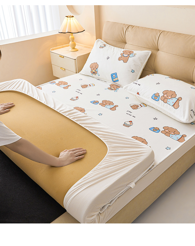 • 91家纺网 家纺一手货源 找家纺 女子家纺 2026春夏新款TPU防水隔尿床护垫床笠款印花小清新卡通儿童床垫保护套 防水床笠-吐司熊