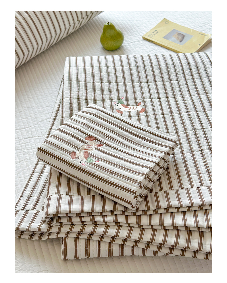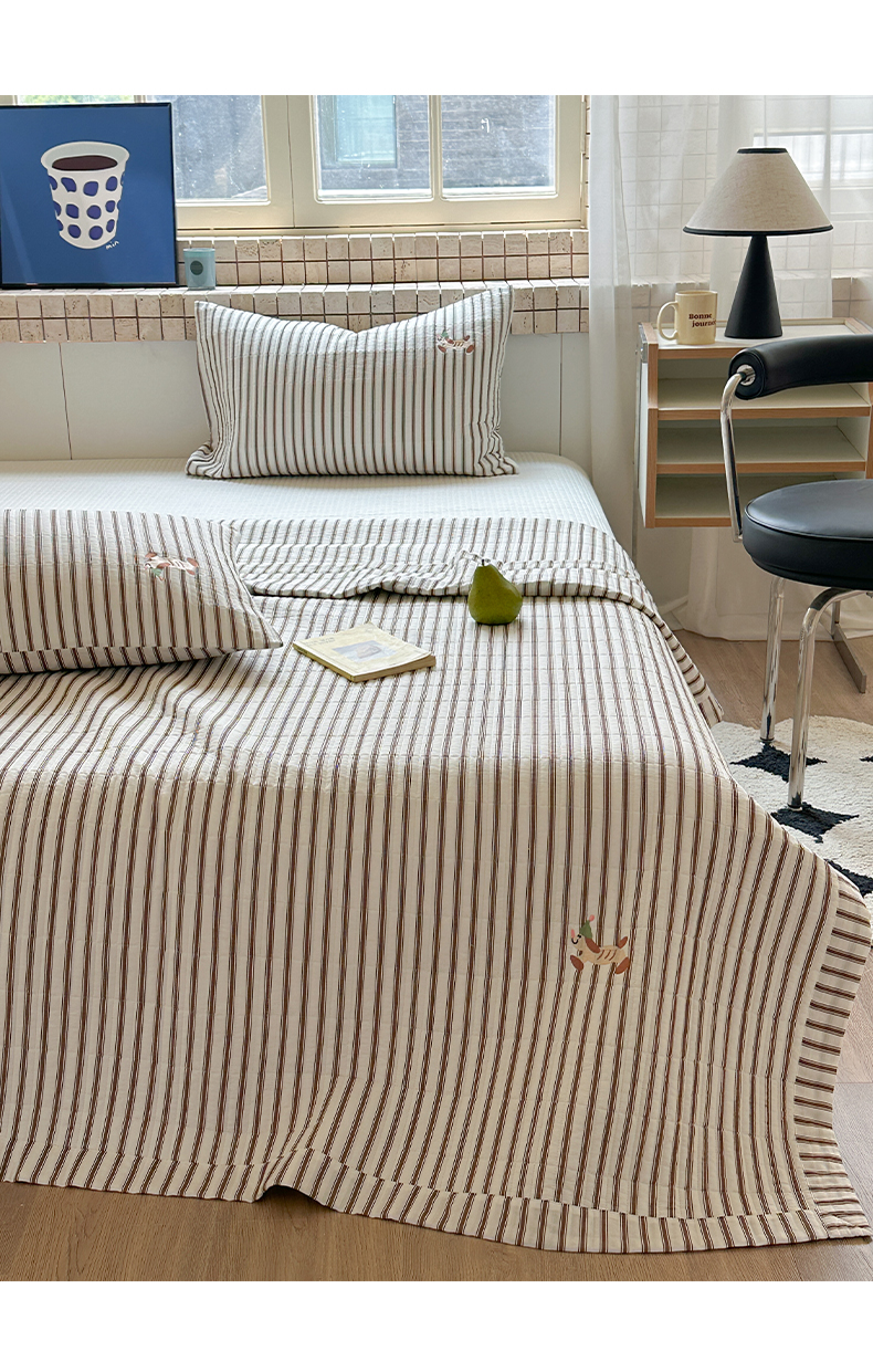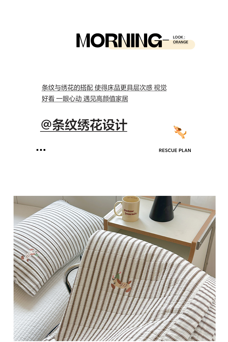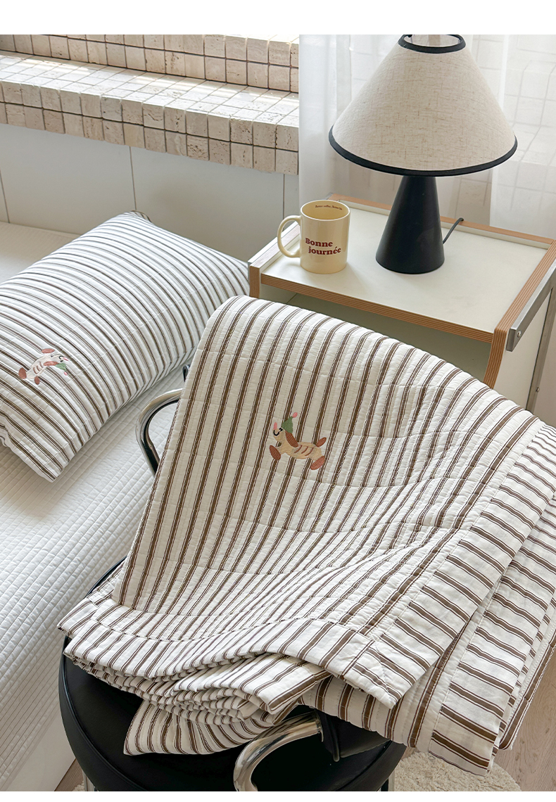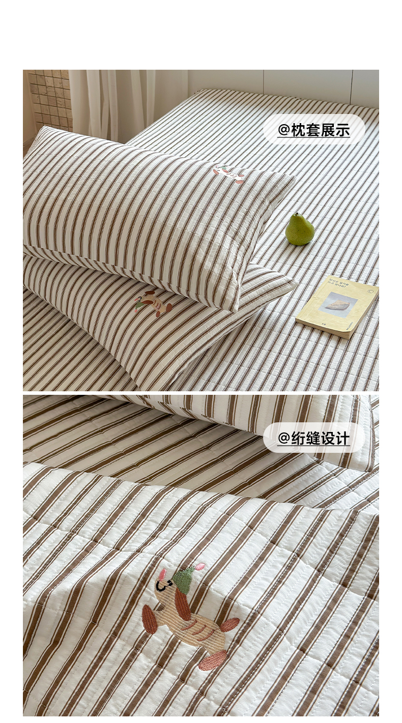琳可家居 2026春夏新品双面斜纹全棉印花绣花床盖可机洗加密绗缝高温水洗 条纹狗狗