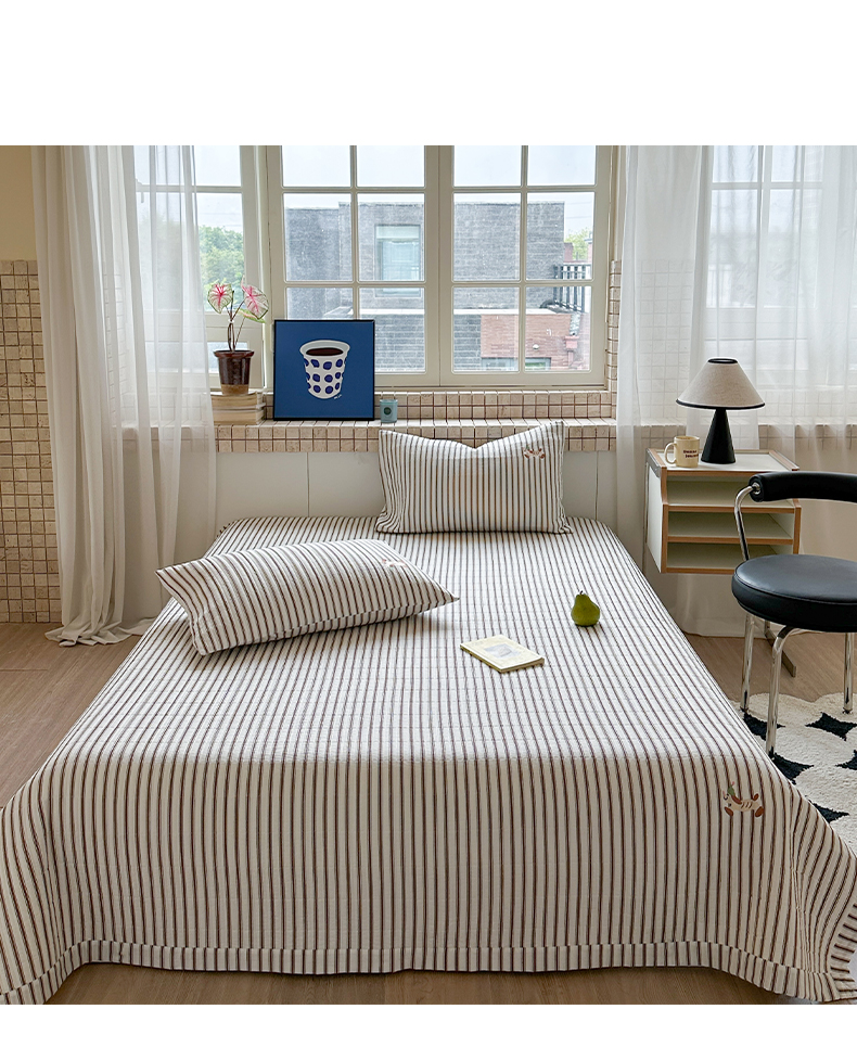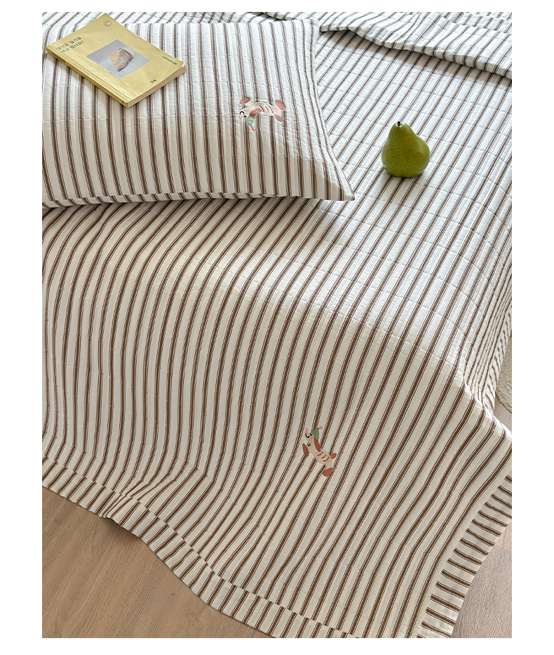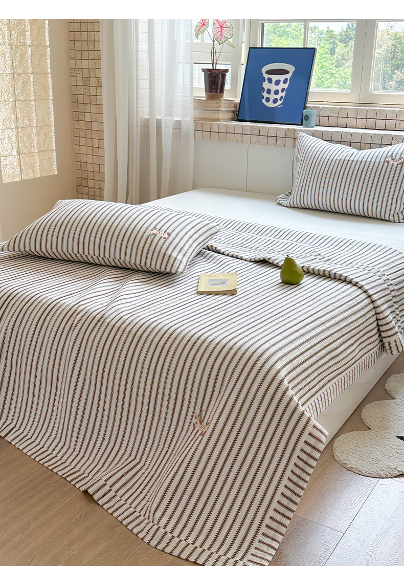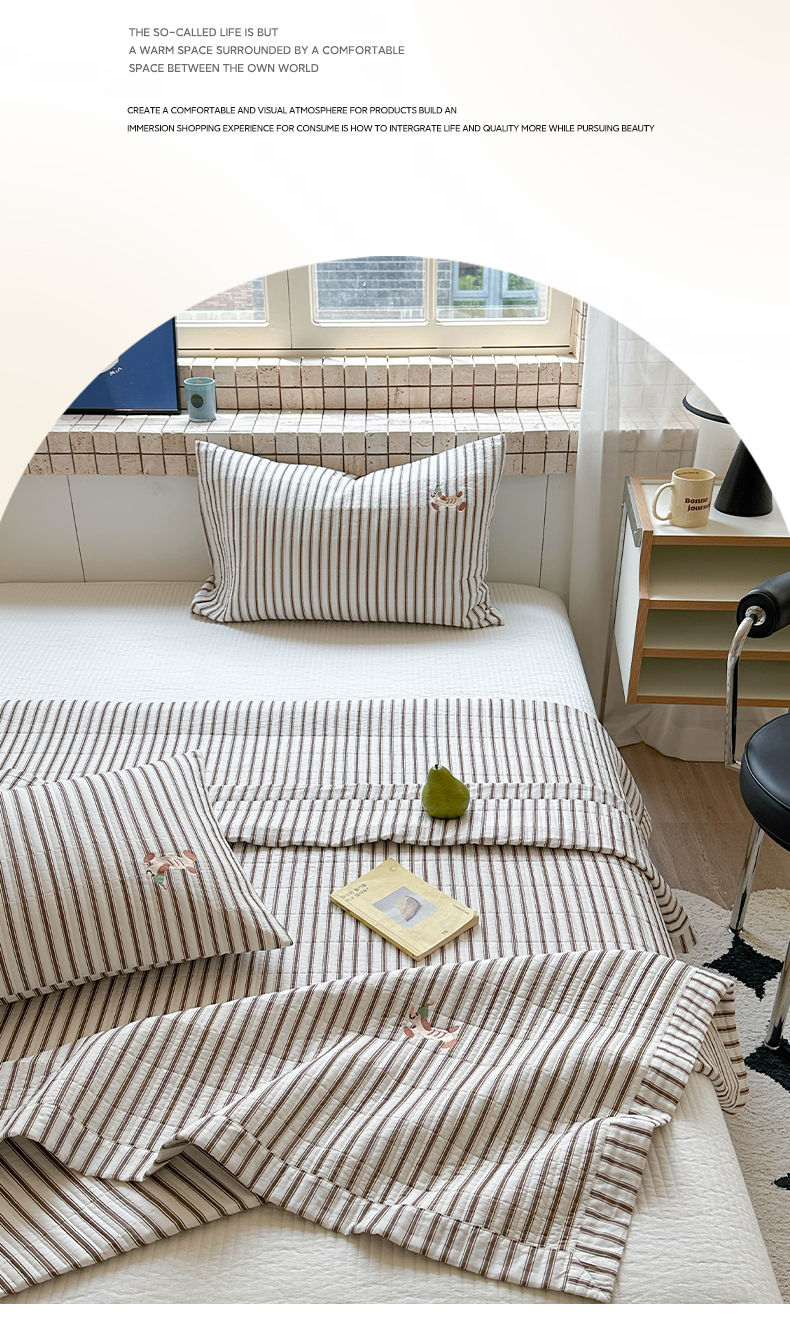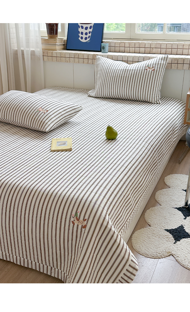 琳可家居 2026春夏新品双面斜纹全棉印花绣花床盖可机洗加密绗缝高温水洗 条纹狗狗