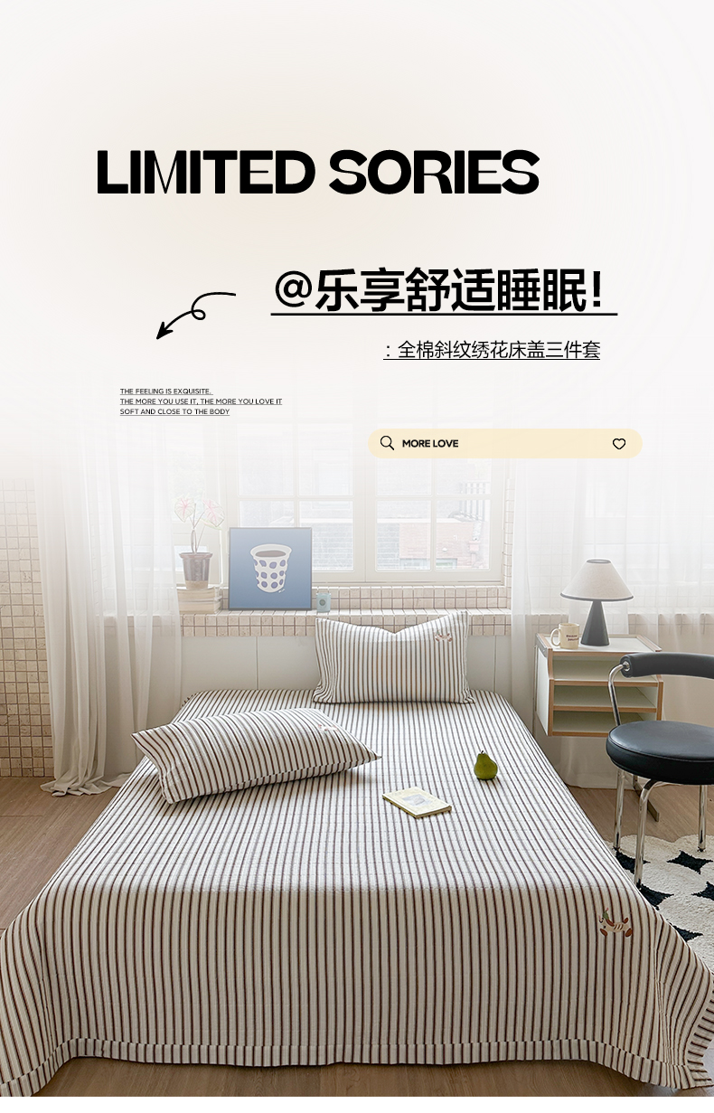 (总)琳可家居 2026新款60S长绒棉花边床盖A类双面全棉高温水洗-蝶恋系列,蝶恋-暖白,蝶恋-卡其,蝶恋-雾粉,组合