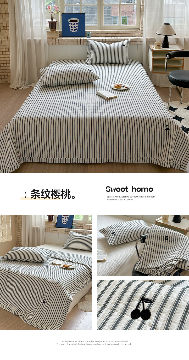 (总)琳可家居 2026春夏新品双面斜纹全棉印花绣花床盖可机洗加密绗缝高温水洗,格子樱桃粉,格子樱桃蓝,条纹狗狗,条纹樱桃,组合