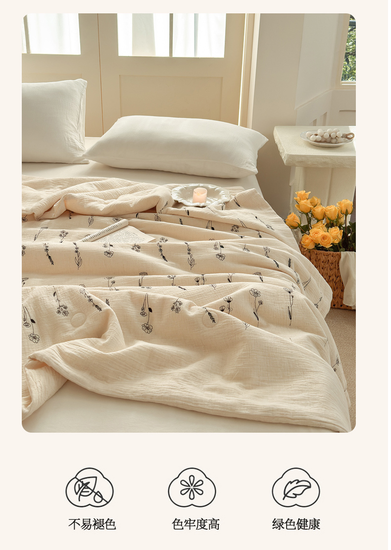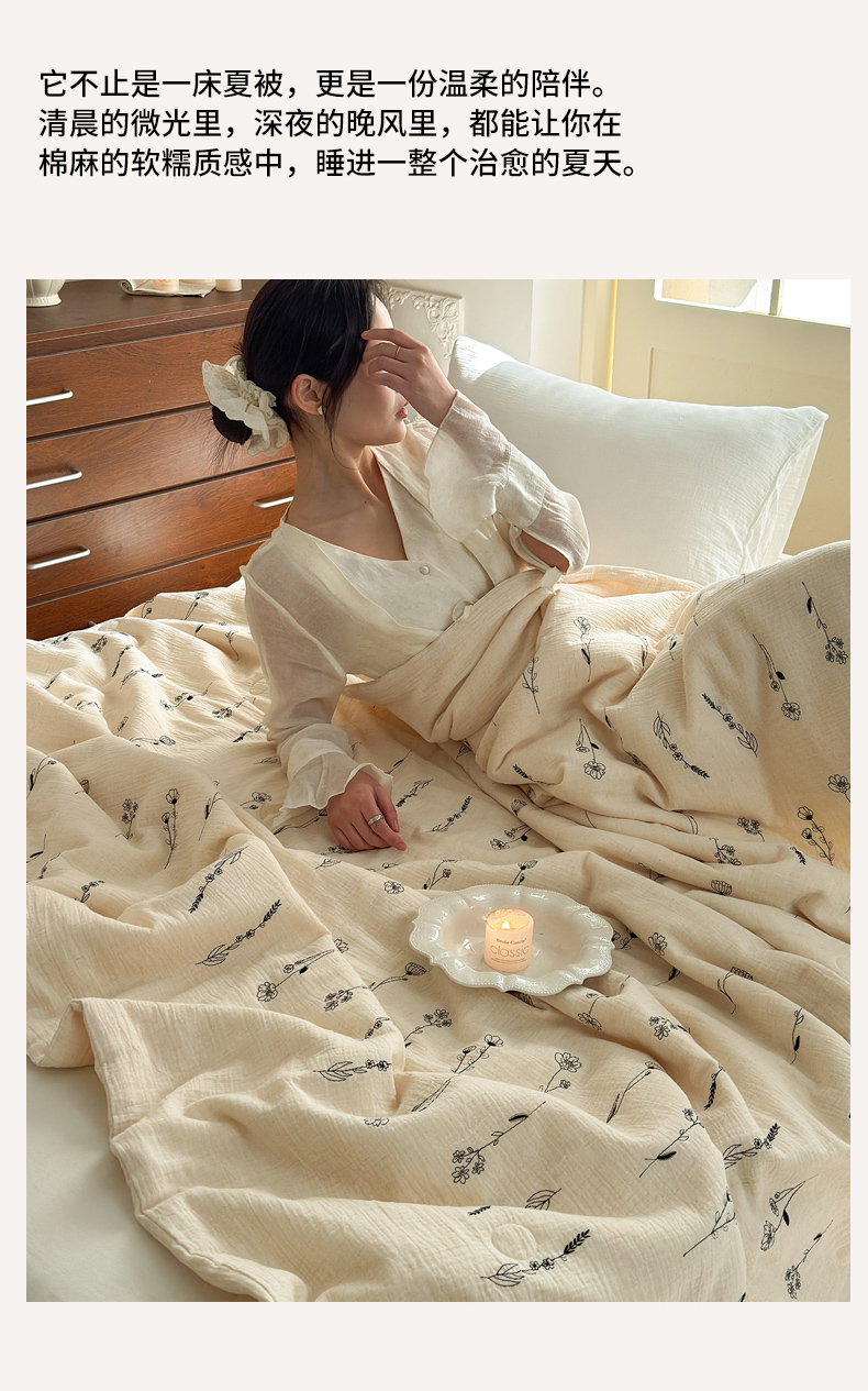 商品名称:木楌家居 2026新款棉麻皱皱纱刺绣款夏被-棉野序章系列 墨绘花影