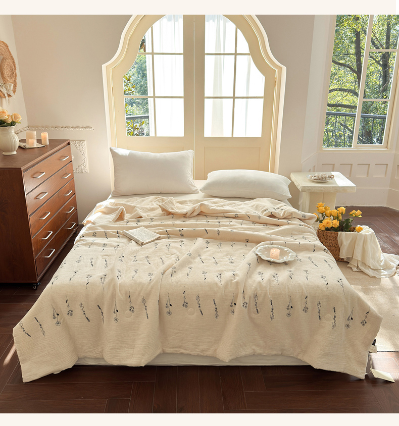 木楌家居 2026新款棉麻皱皱纱刺绣款夏被-棉野序章系列 墨绘花影