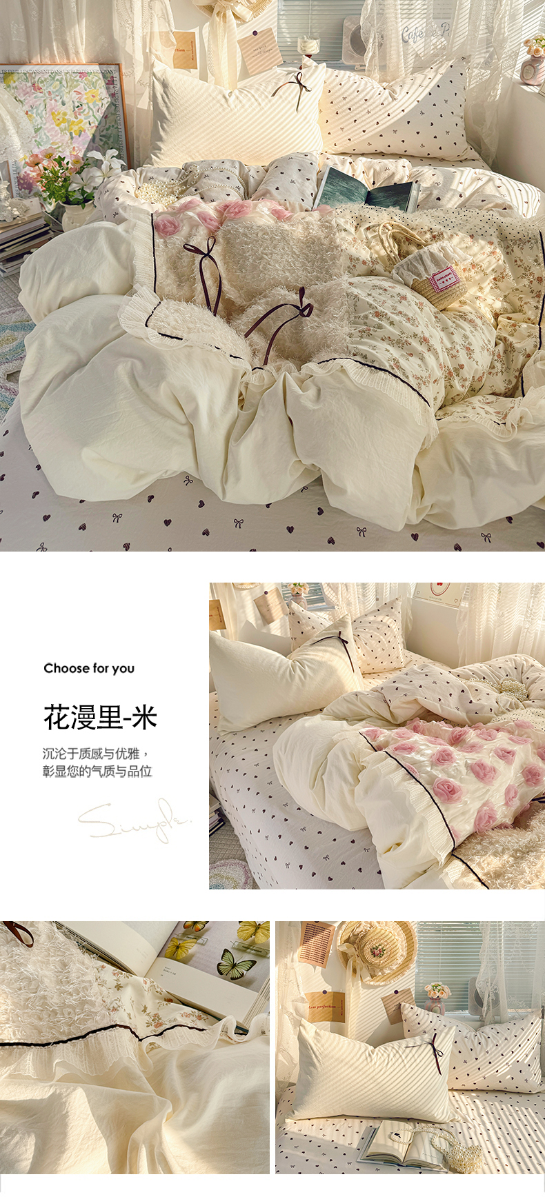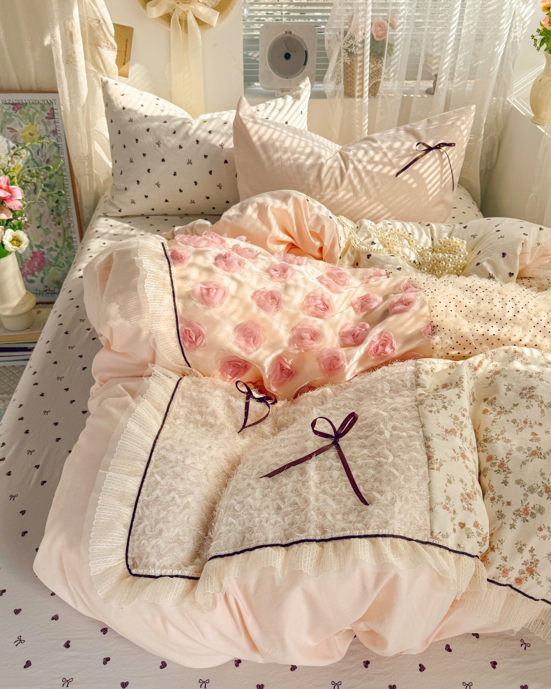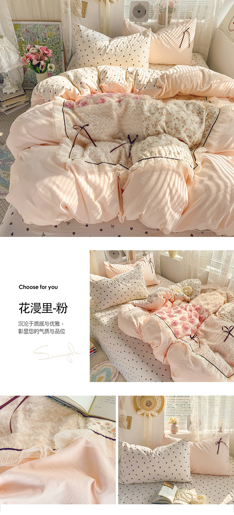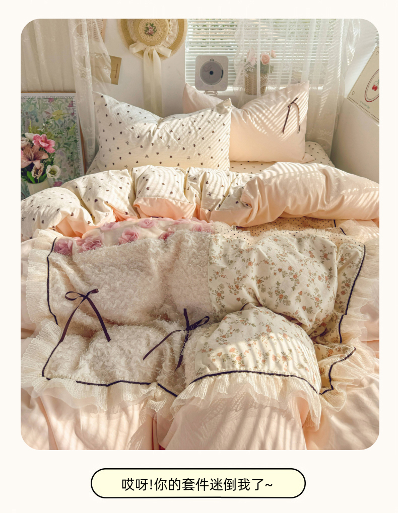 当前位置: 91家纺网 > 商品网购 > 床品套件 > 四件套 > 水洗棉四件套 > 庭笙 2026新款可爱少女心玫瑰花碎花拼接棉感四件套-花漫里 花漫里-粉