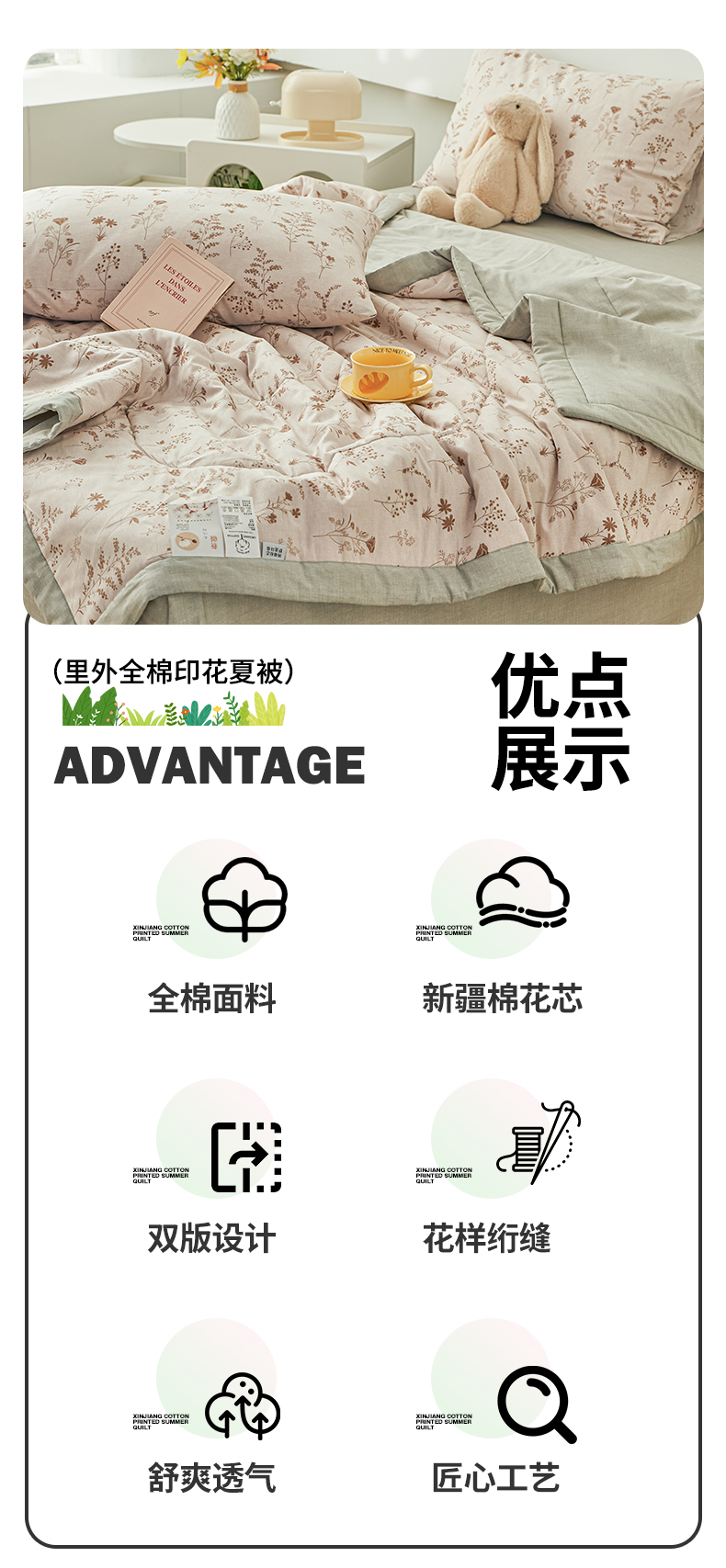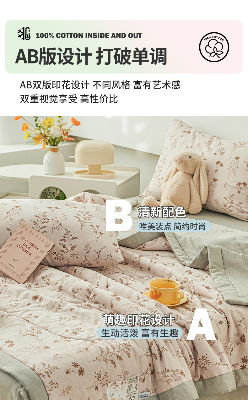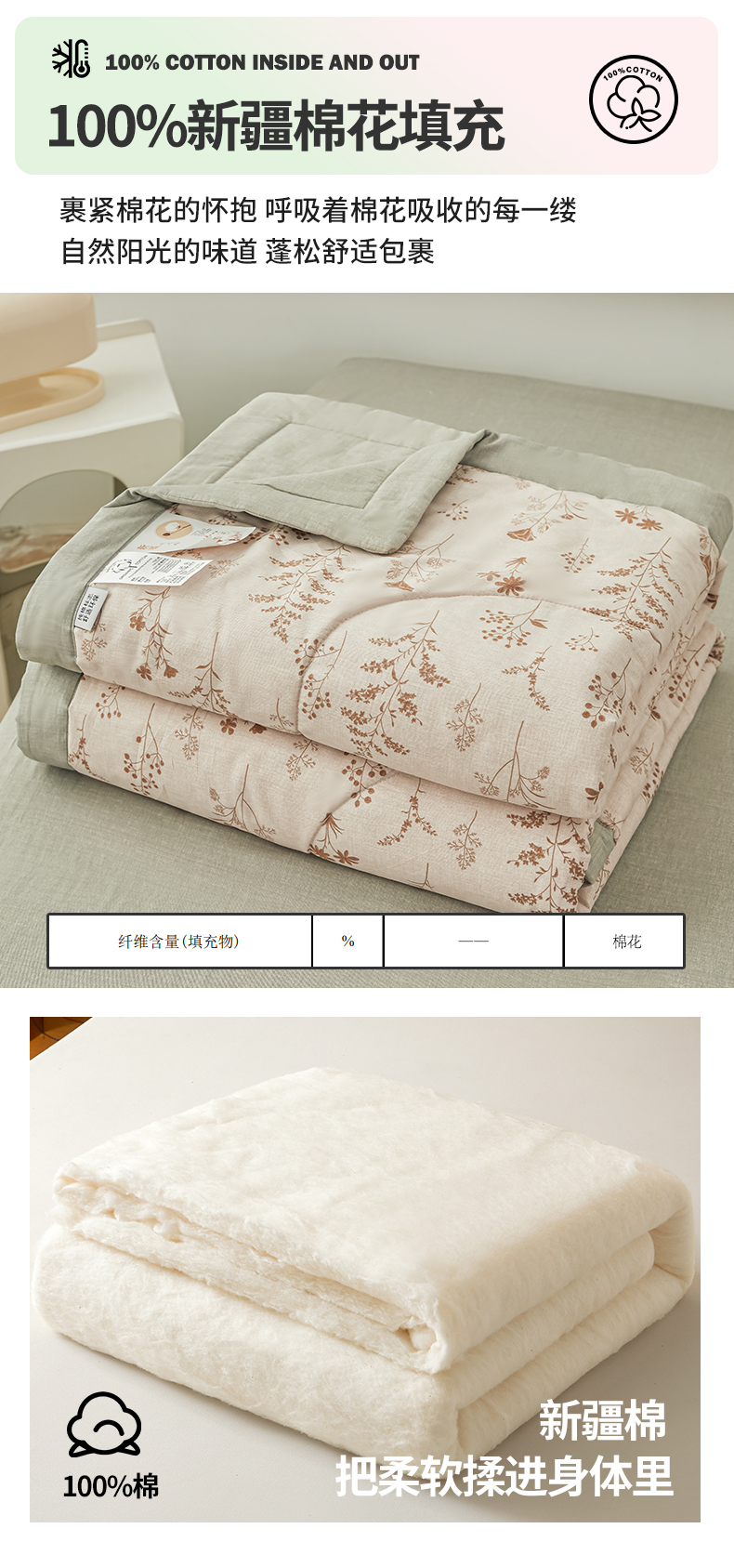 尊妙被业 2026新款小清新花卉里外全棉纯棉棉花被夏被夏凉被空调被 琼枝