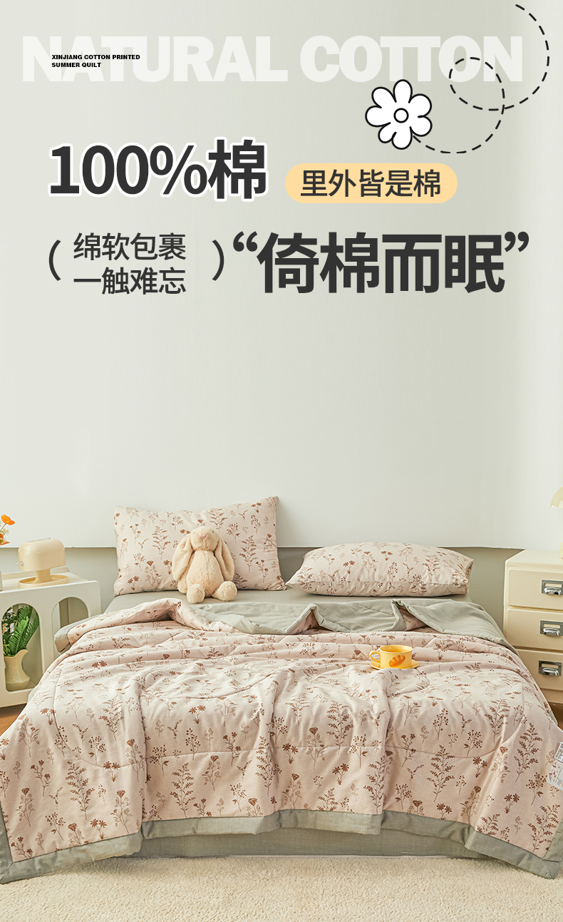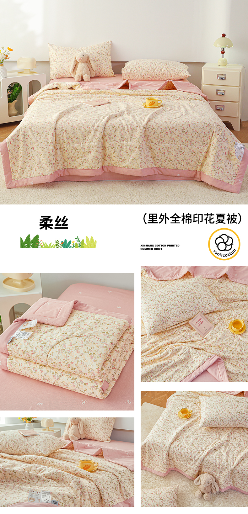 • 91家纺网 家纺一手货源 找家纺 尊妙被业 2026新款小清新花卉里外全棉纯棉棉花被夏被夏凉被空调被 琼枝