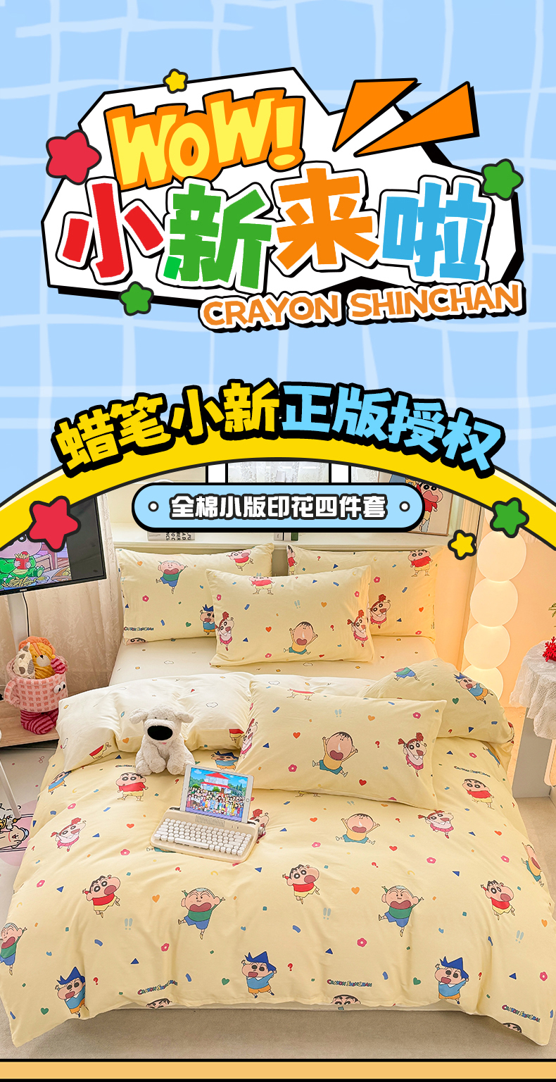 当前位置: 91家纺网 > 商品网购 > 床品套件 > 四件套 > 全棉普通四件套 > 博雅 2026新款蜡笔小新纯棉全棉四件套 小版-黄油蜡笔小新