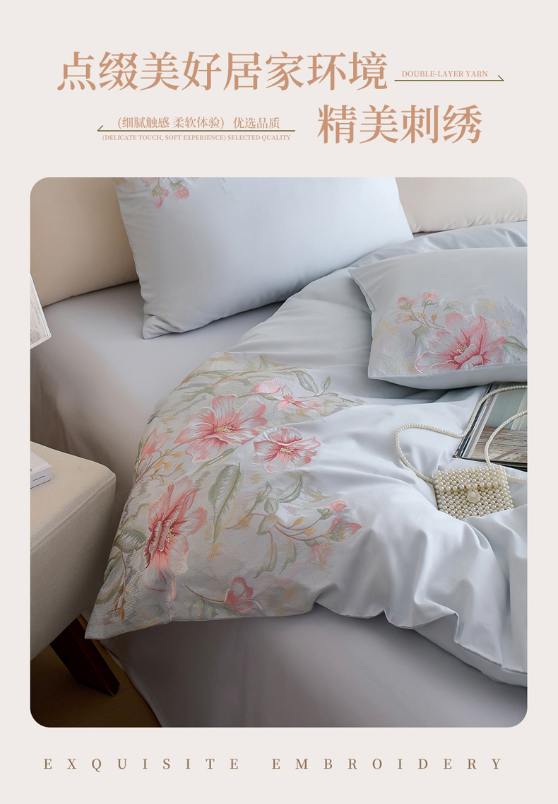 (总)爱缦 2026新款100S全棉CR工艺极简轻奢刺绣四件套-花海郁金系列风格二(券后控价:标准288,大号308),花海郁金-白粉色,花海郁金-白绿色,花海郁金-粉色,花海郁金-蓝色