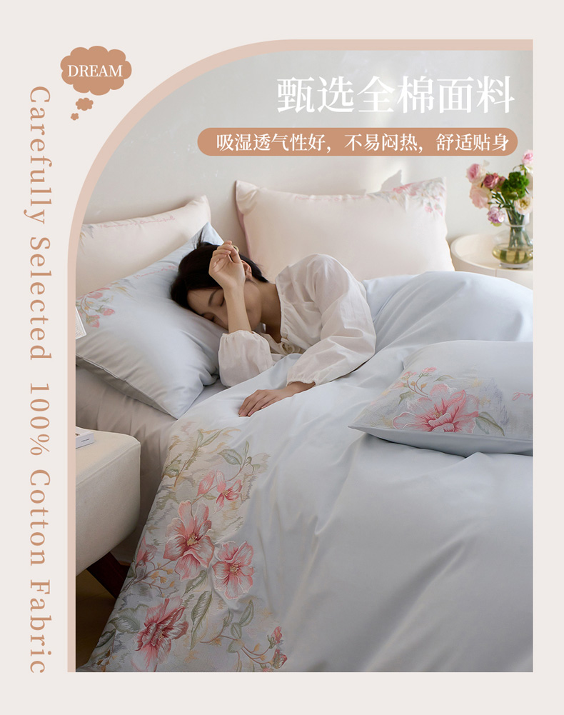 (总)爱缦 2026新款100S全棉CR工艺极简轻奢刺绣四件套-花海郁金系列风格一(券后控价:标准288,大号308),花海郁金-白粉色,花海郁金-白绿色,花海郁金-粉色,花海郁金-蓝色