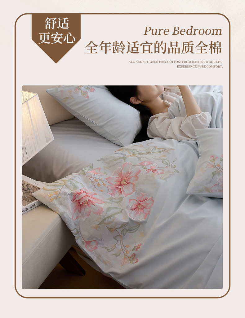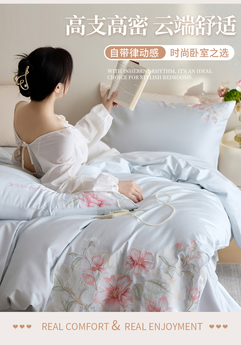 (总)爱缦 2025新款花草自春风系列100支新疆长绒棉四件套,柏林少女,清水芙蓉,云朵吐司
