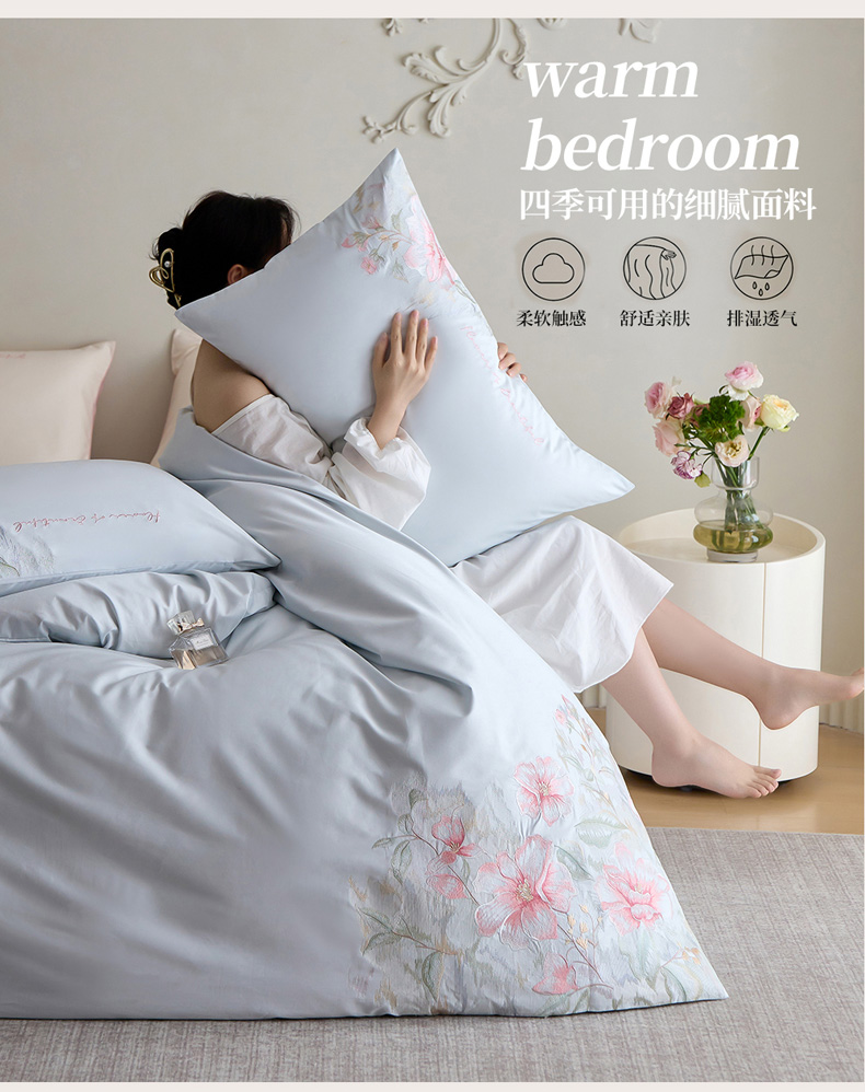 (总)爱缦 2025新款100支新疆长绒棉刺绣四件套-时光系列,时光-薄荷青,时光-芙蓉粉,时光-元气白桃