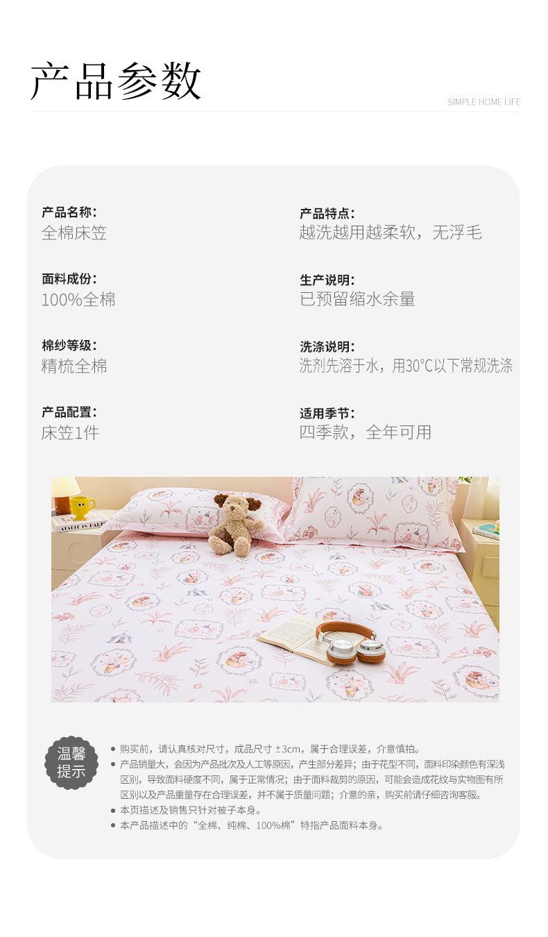 商品名称:(总)元元家居(元元被业) 2026新款全棉13372套件及单品【印花款】-单床笠