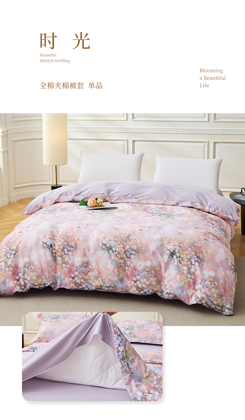 商品名称:元元家居(元元被业) 2026新款全棉13372套件及单品【印花款】-夹棉被套 春风