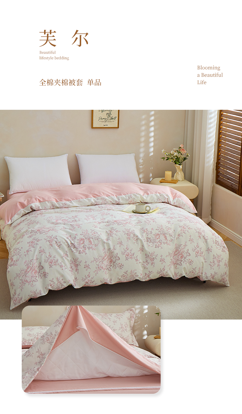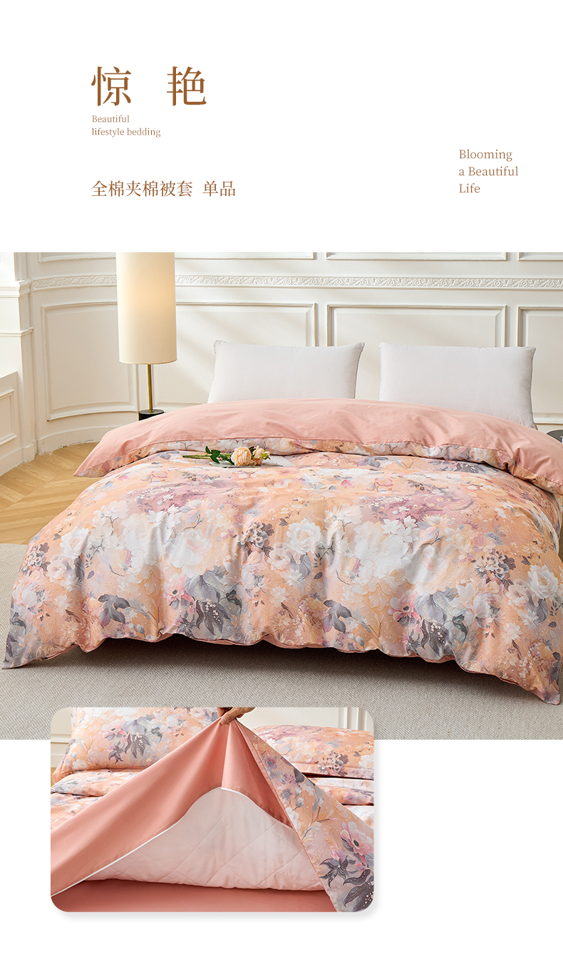 元元家居(元元被业) 2026新款全棉13372套件及单品【印花款】-夹棉被套 花漾绿
