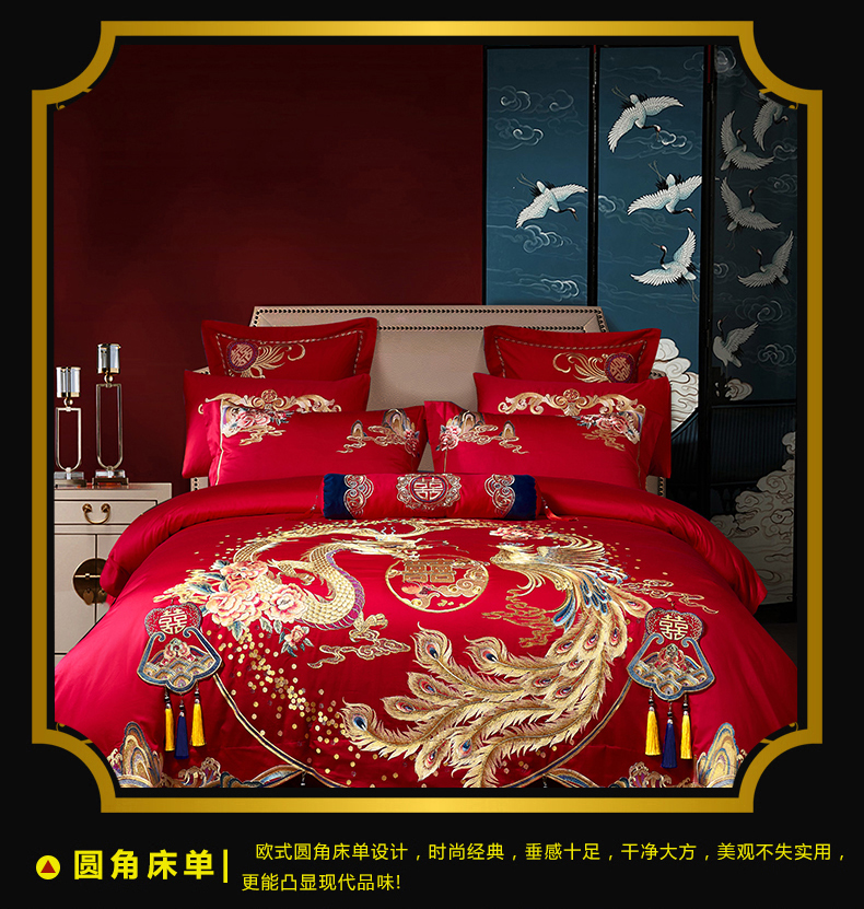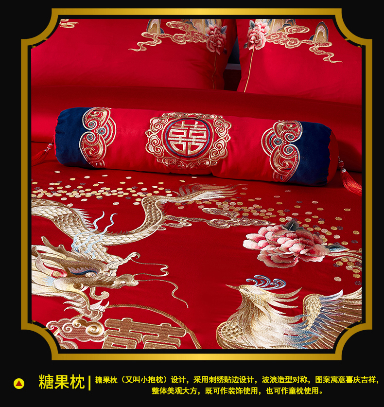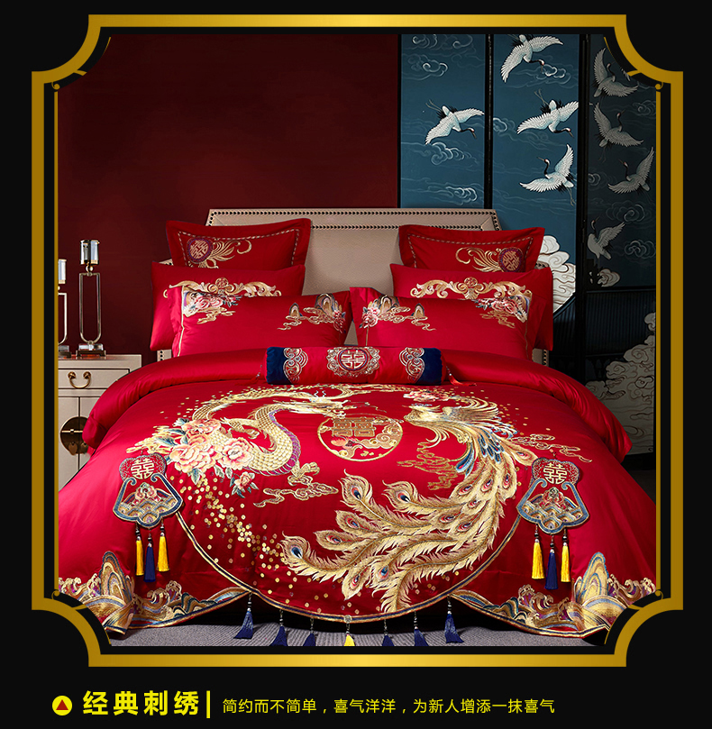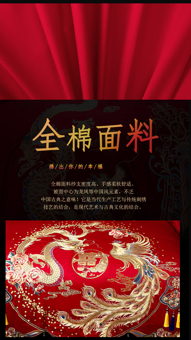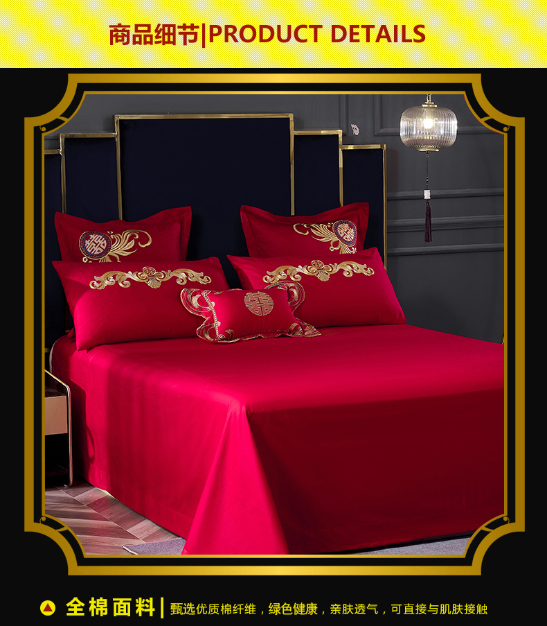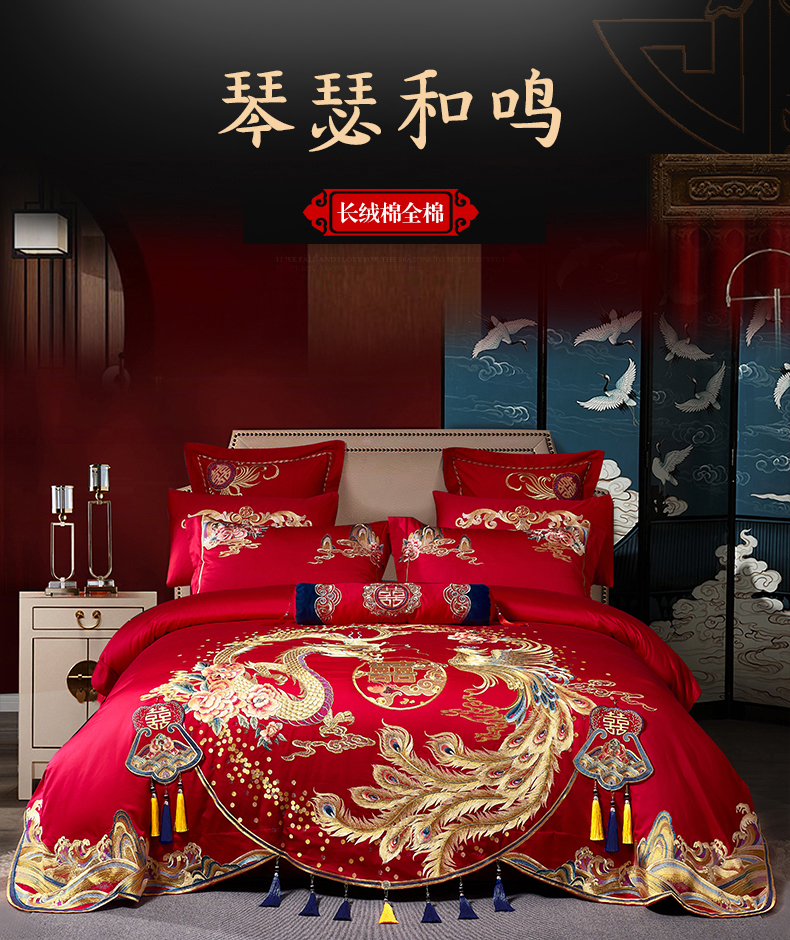 当前位置: 91家纺网 > 商品网购 > 床品套件 > 四件套 > 婚庆四件套 > 慕她家纺 2026年全棉纯棉婚庆四件套大红色刺绣结床上用品(床盖款加40) 琴瑟和鸣