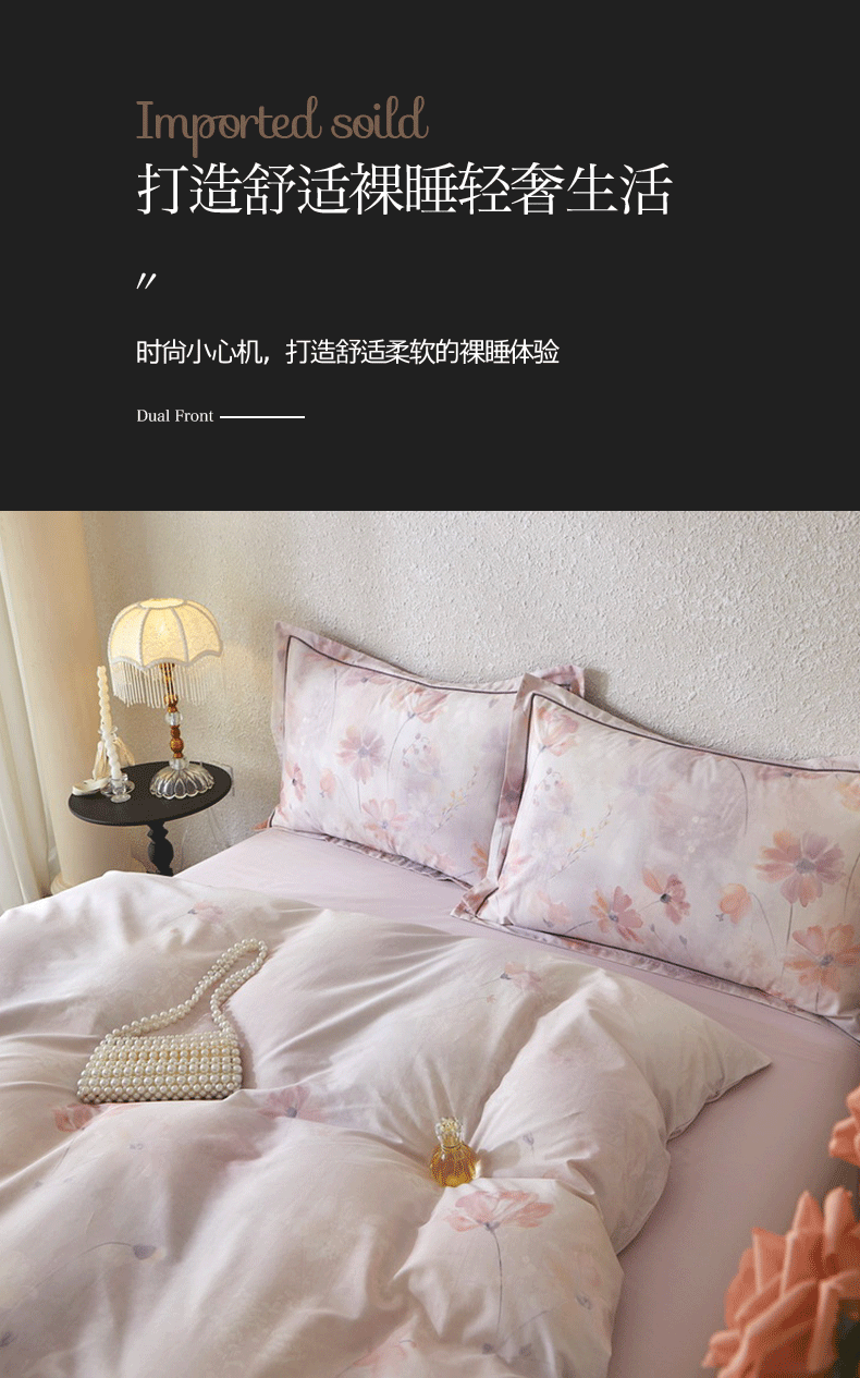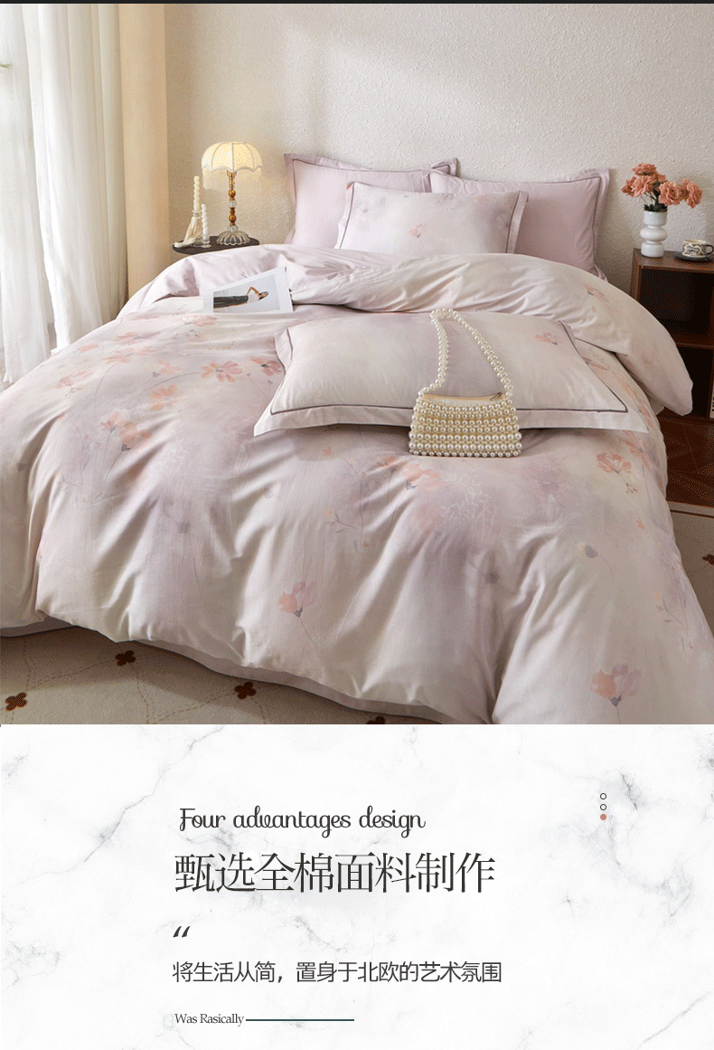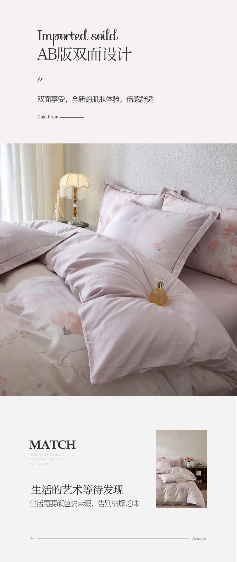 沐白家居 2026新款亲肤舒适全棉印花四件套 时薇(紫)