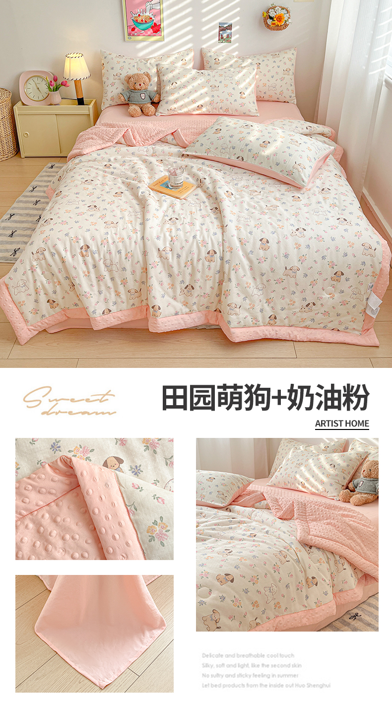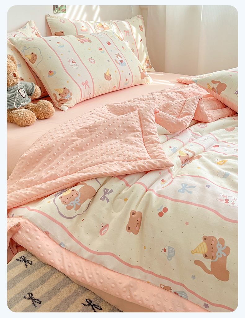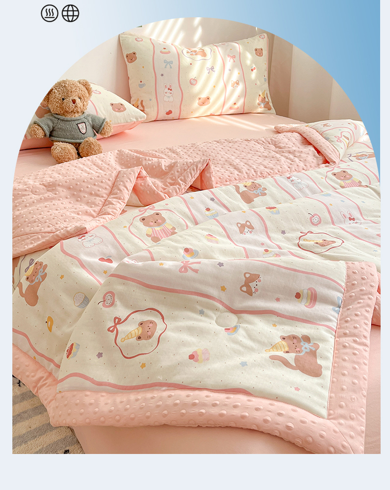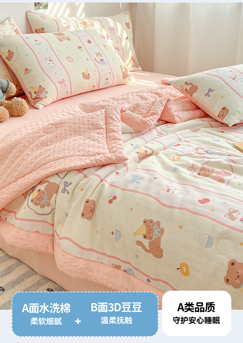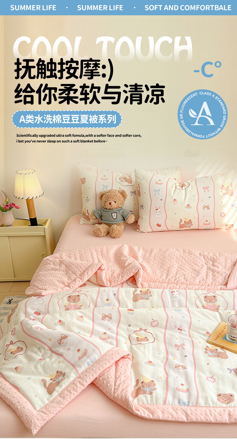 盛秋家纺 2026新款A类水洗棉豆豆夏被系列二 甜茶日记+奶油粉