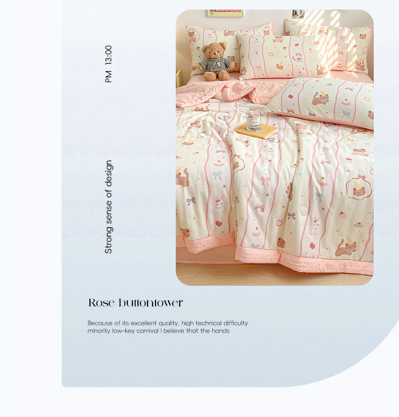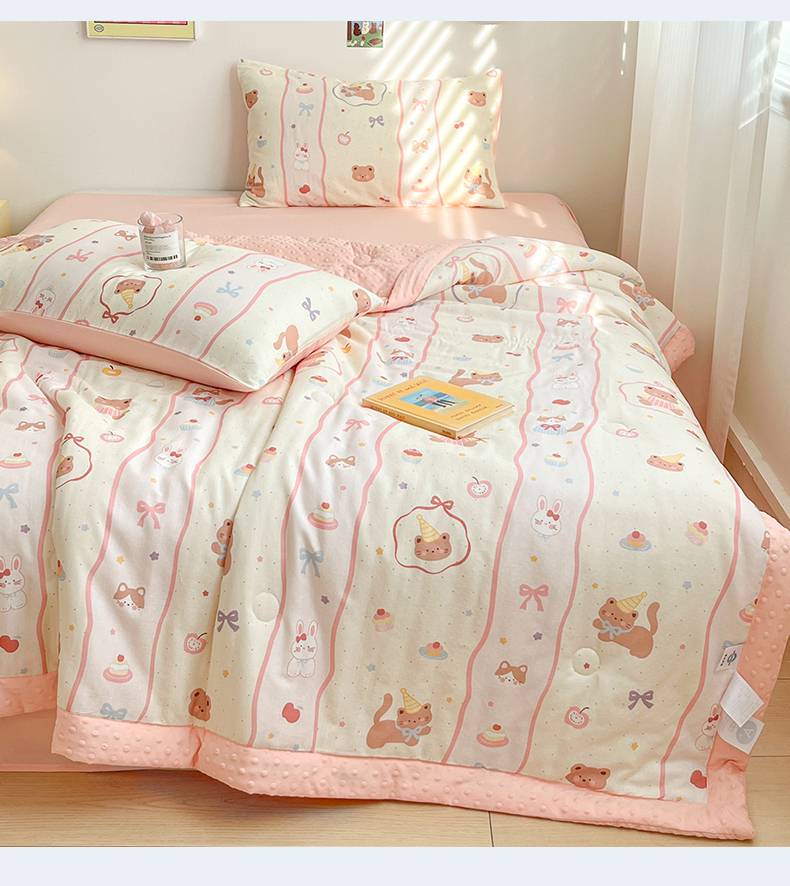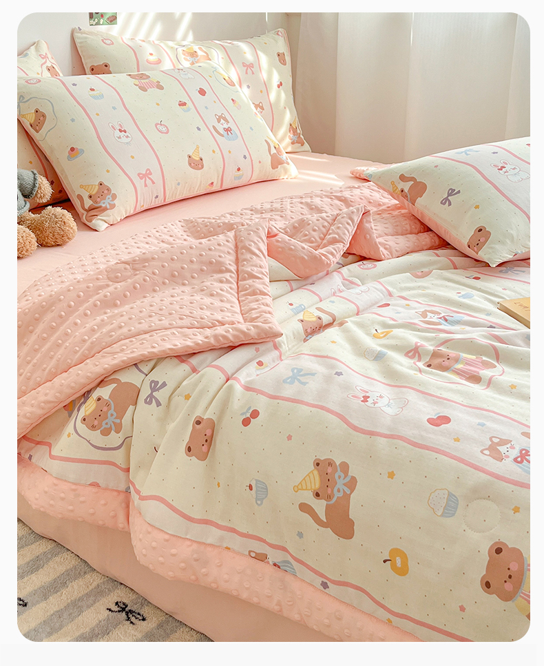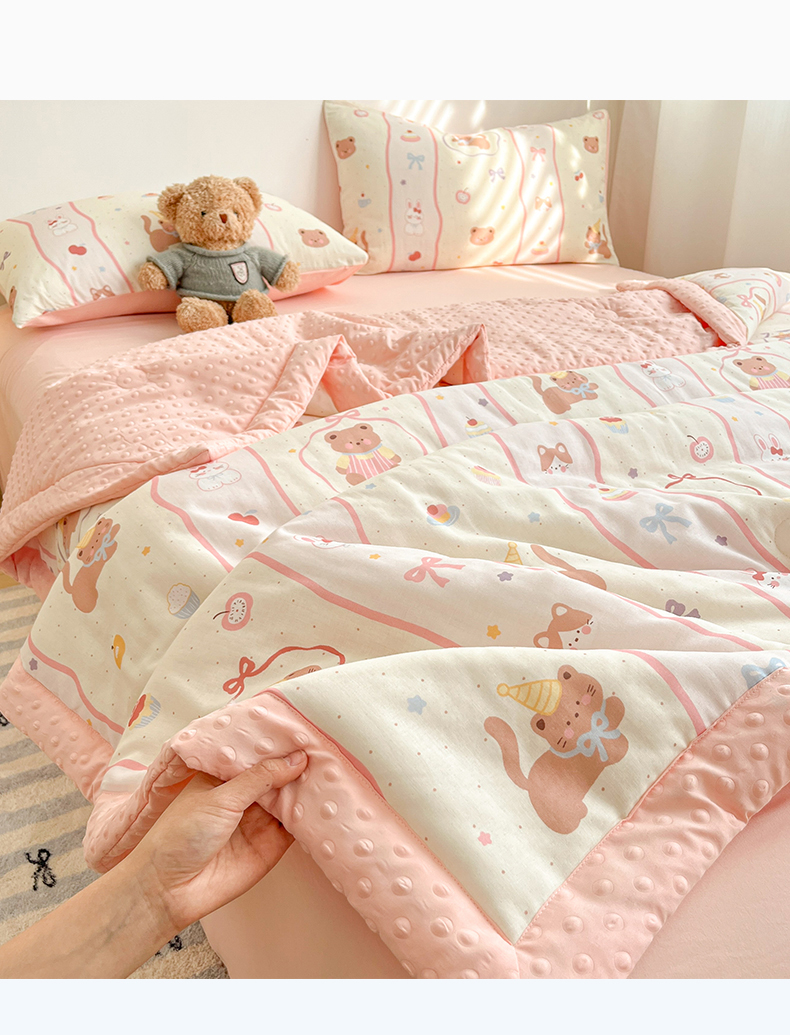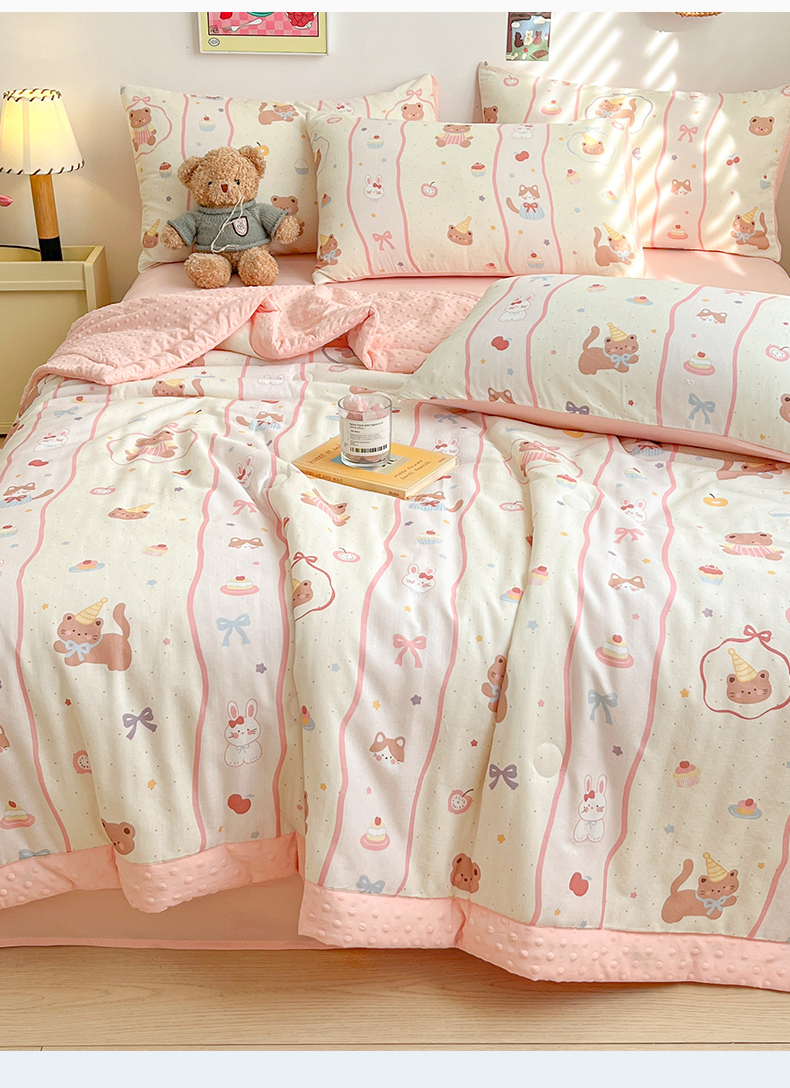 盛秋家纺 2026新款A类水洗棉豆豆夏被系列二 甜茶日记+奶油粉