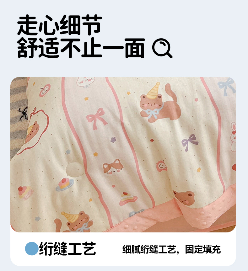 当前位置: 91家纺网 > 商品网购 > 被子 > 夏被 > 盛秋家纺 2026新款A类水洗棉豆豆夏被系列二 甜茶日记+奶油粉