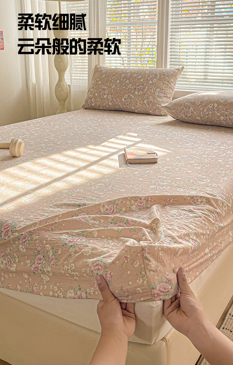 当前位置: 91家纺网 > 商品网购 > 床上用品 > 床笠 > 优选良品 2025新款ins小清新木棉双层纱印花床笠床垫保护罩枕套三件套 绮梦