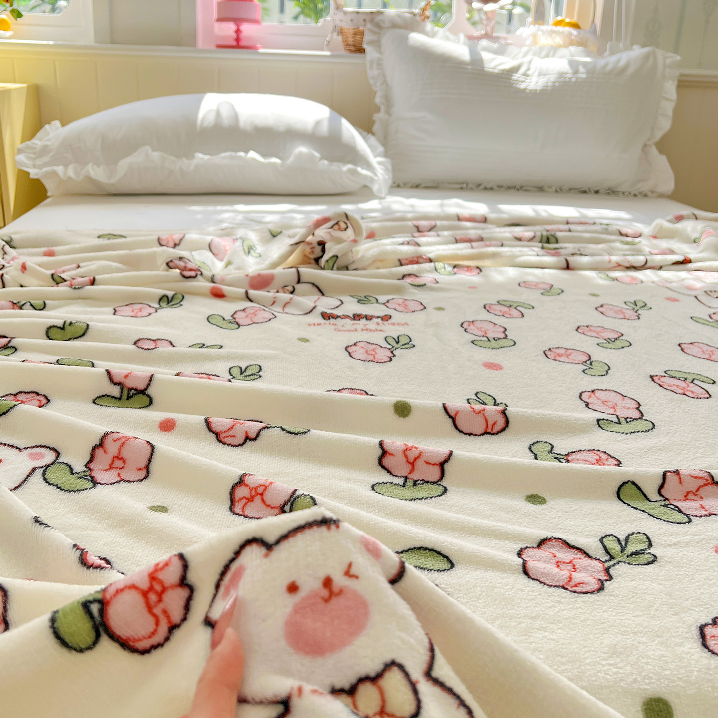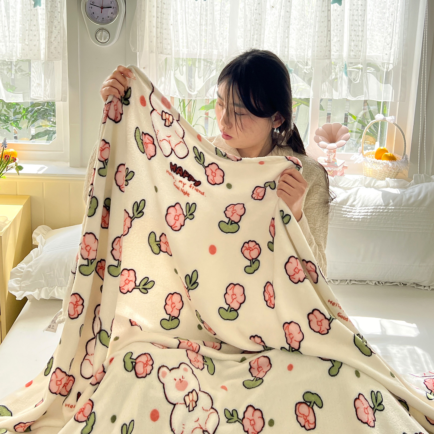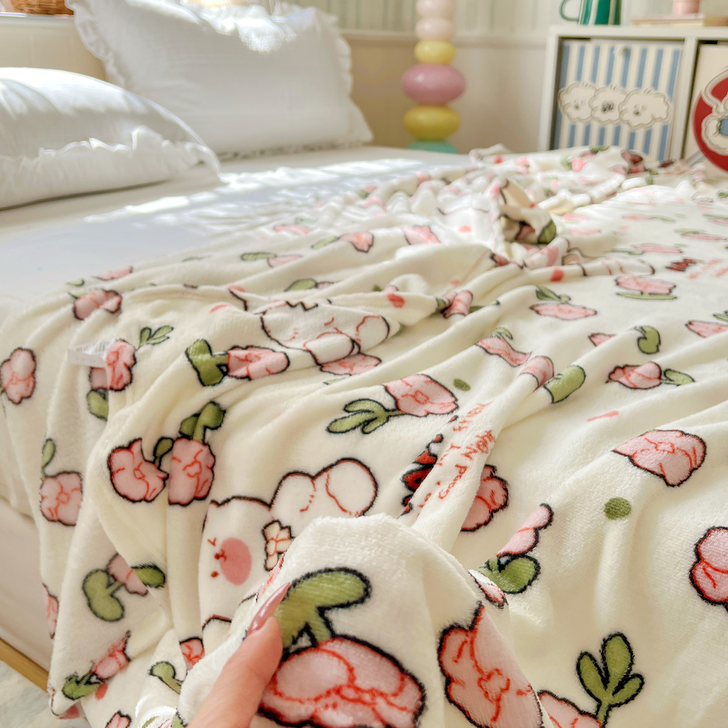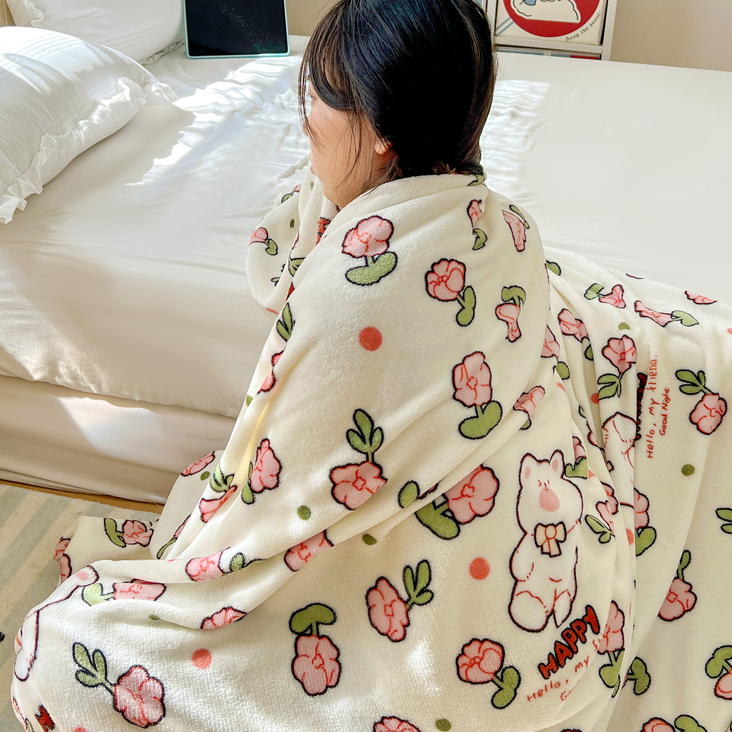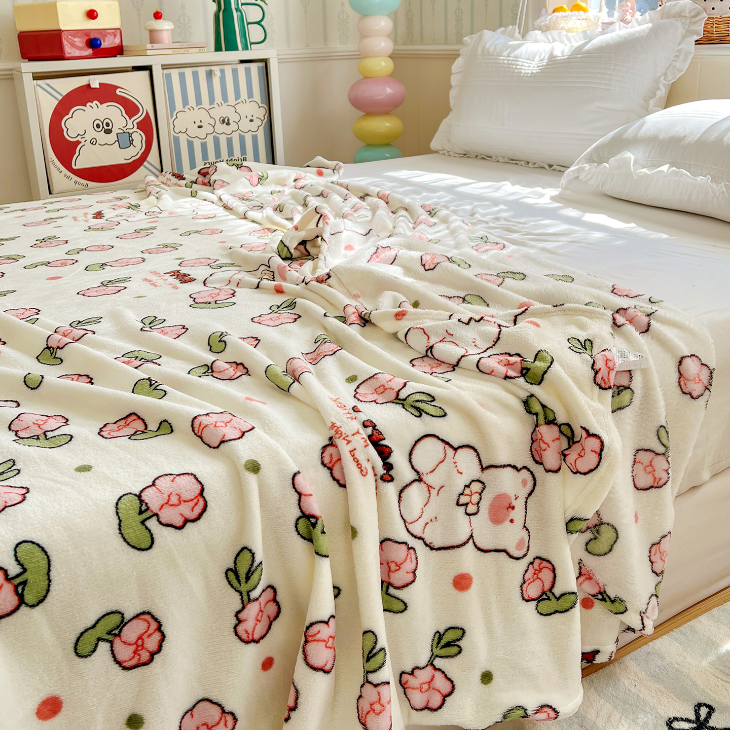 悦织湾家纺 2026新款印花法兰绒毛毯牛奶绒盖毯春秋空调毯儿童床单小被子 花花世界