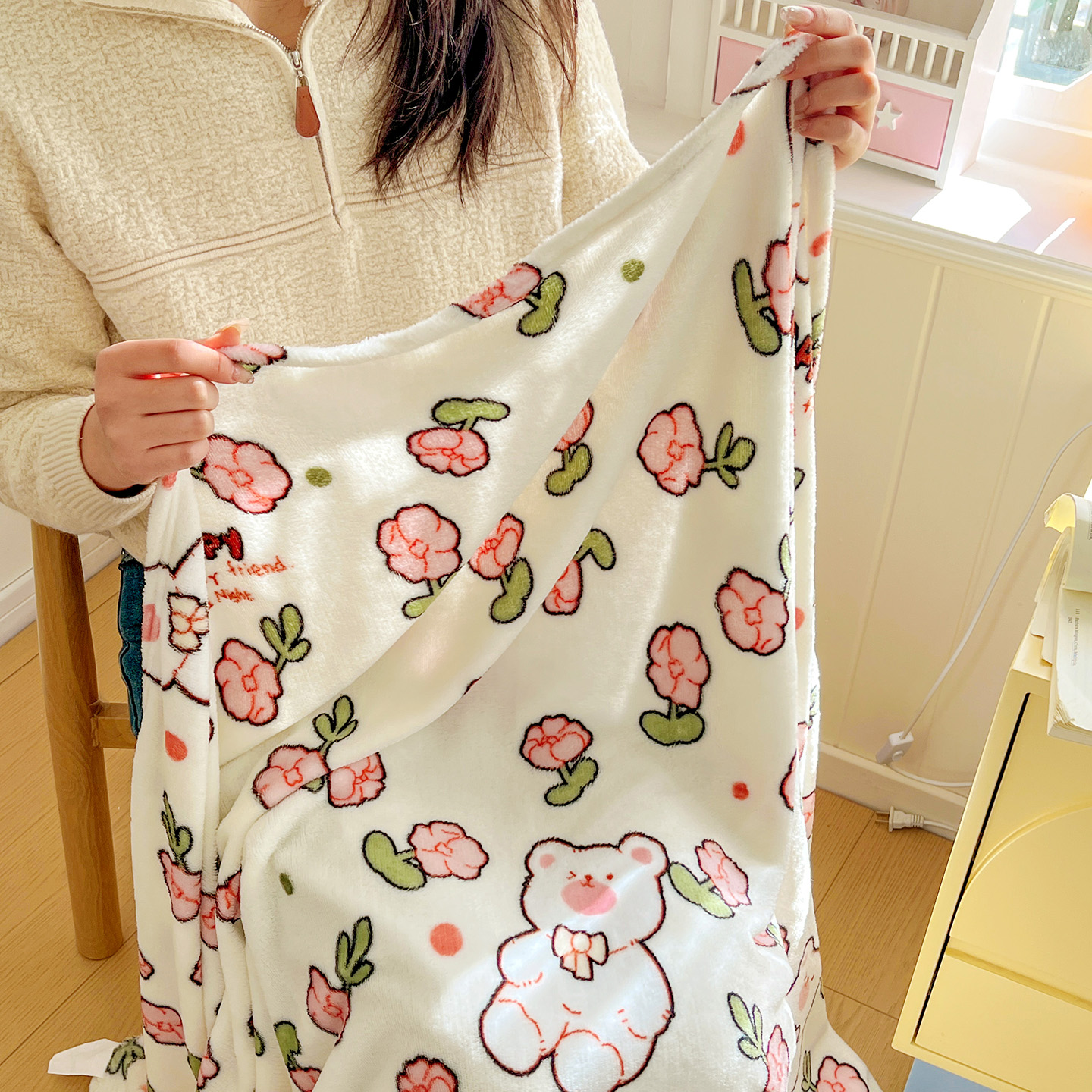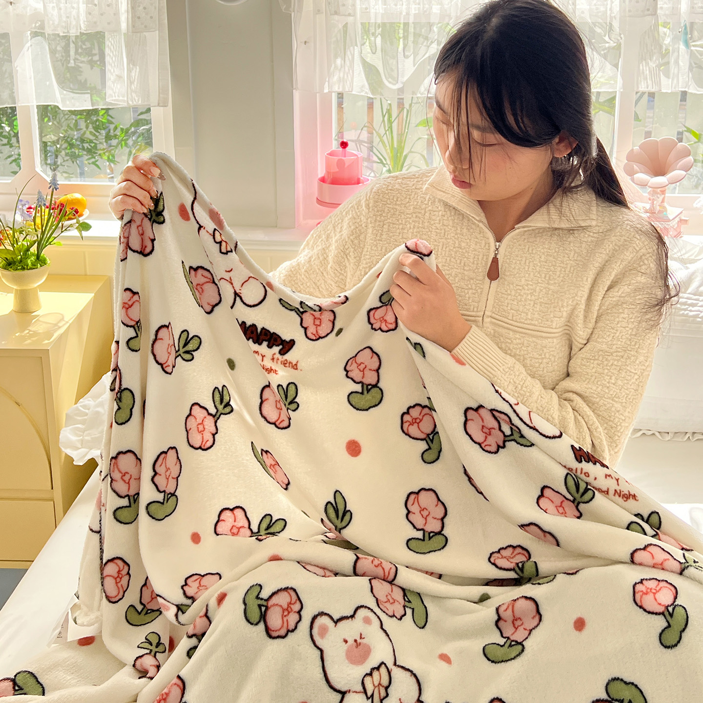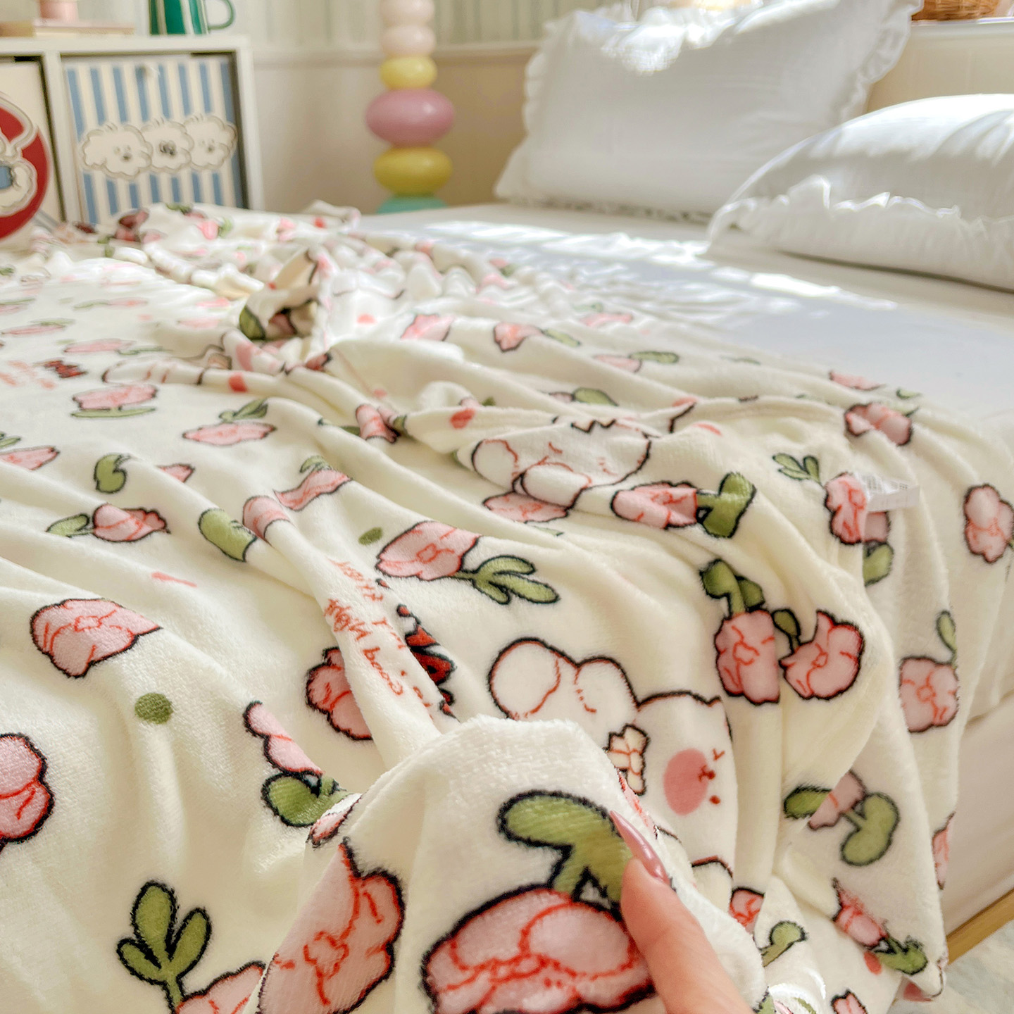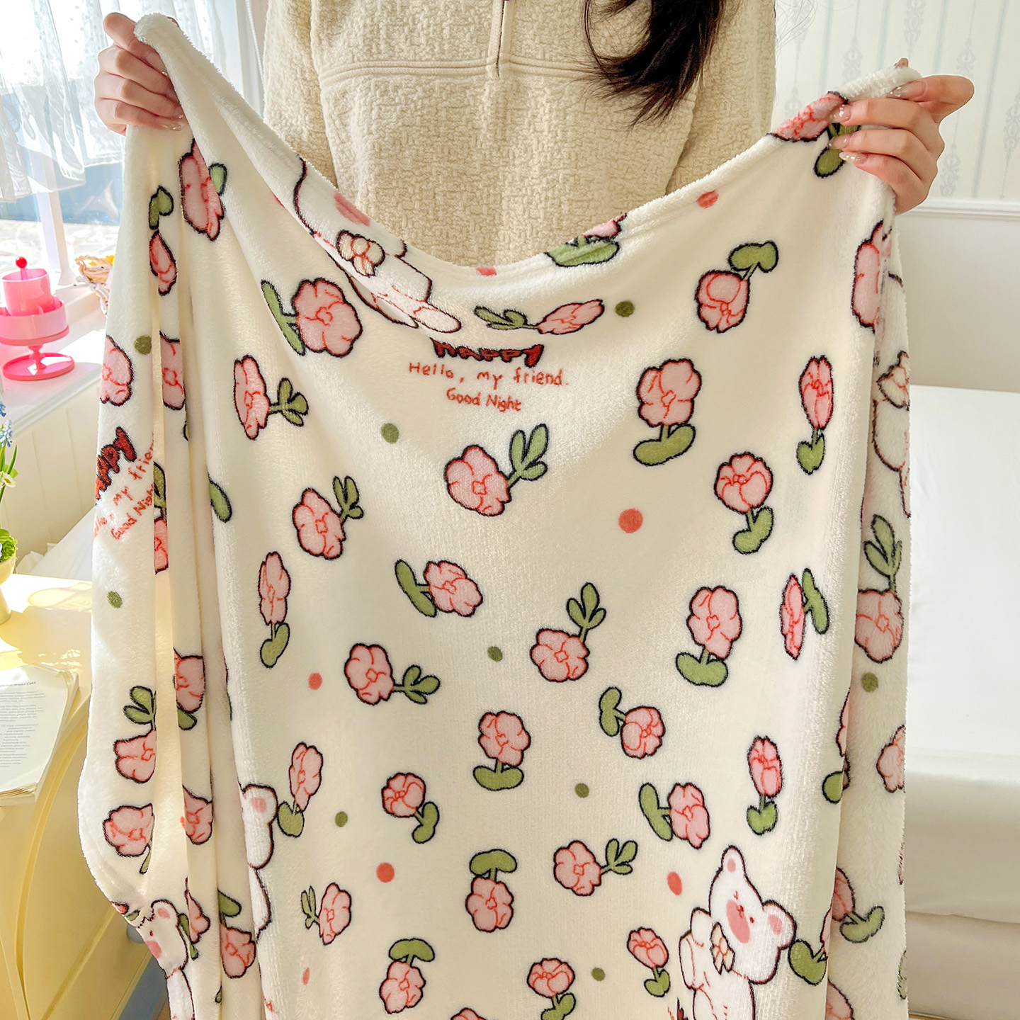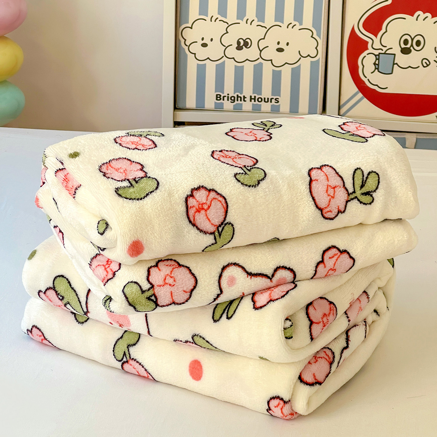 悦织湾家纺 2026新款印花法兰绒毛毯牛奶绒盖毯春秋空调毯儿童床单小被子 花花世界