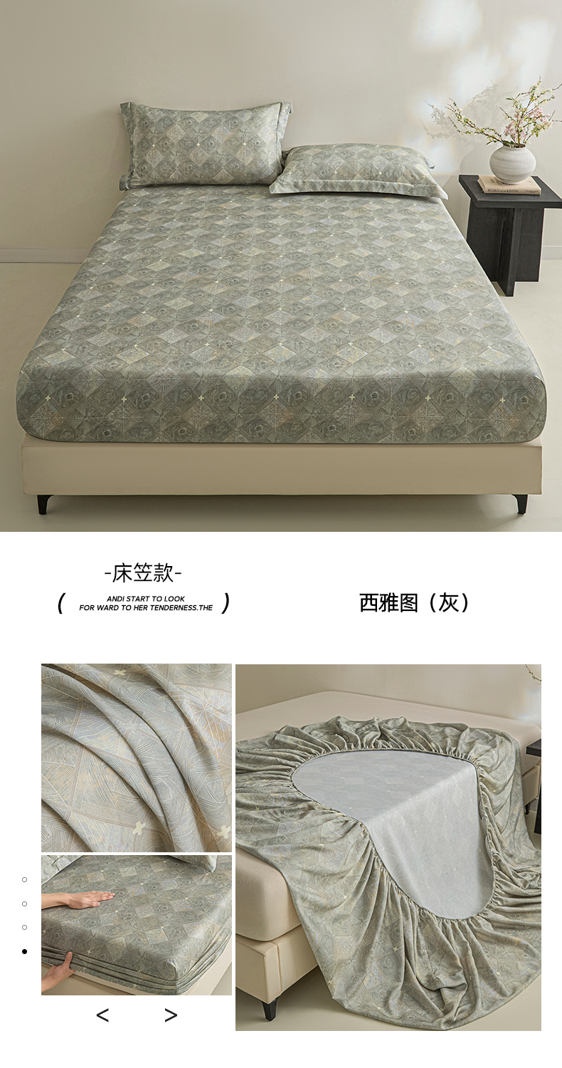 • 91家纺网 家纺一手货源 找家纺 禾时 2026春夏新款50s莱赛尔天丝床笠三件套床笠单件 舒亦(灰)