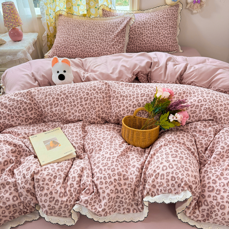 商品名称:睡美美家纺 2026新款A类古法水洗棉法式花边四件套 俏皮狗