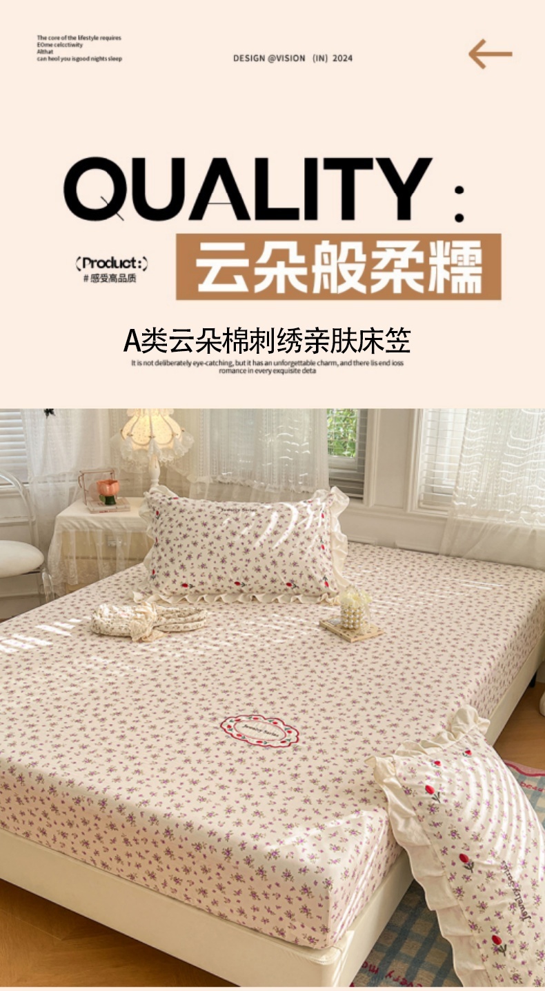 (总)梦舒羽 2026新款A类云朵棉亲肤四季款刺绣床笠席梦思床罩全包床单三件套,春日暖阳(刺绣款),花间集-粉(刺绣款),爱丽丝-粉(刺绣款),巴黎之恋(刺绣款),薄荷之夏(刺绣款),花漾甜心(刺绣款),秘密花园(刺绣款),芊芊花海(刺绣款),欣欣花语-紫(刺绣款),组合