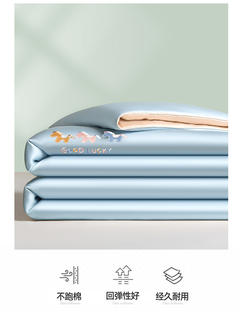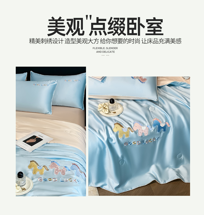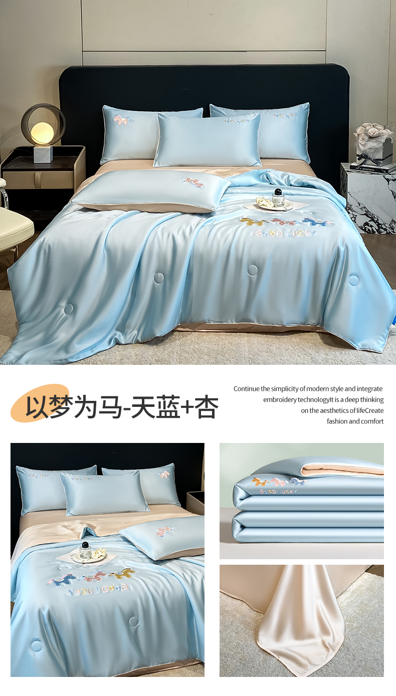 • 91家纺网 家纺一手货源 找家纺 笙意家纺 2026新款小马元素刺绣夏被-以梦为马系列 以梦为马-天蓝+杏