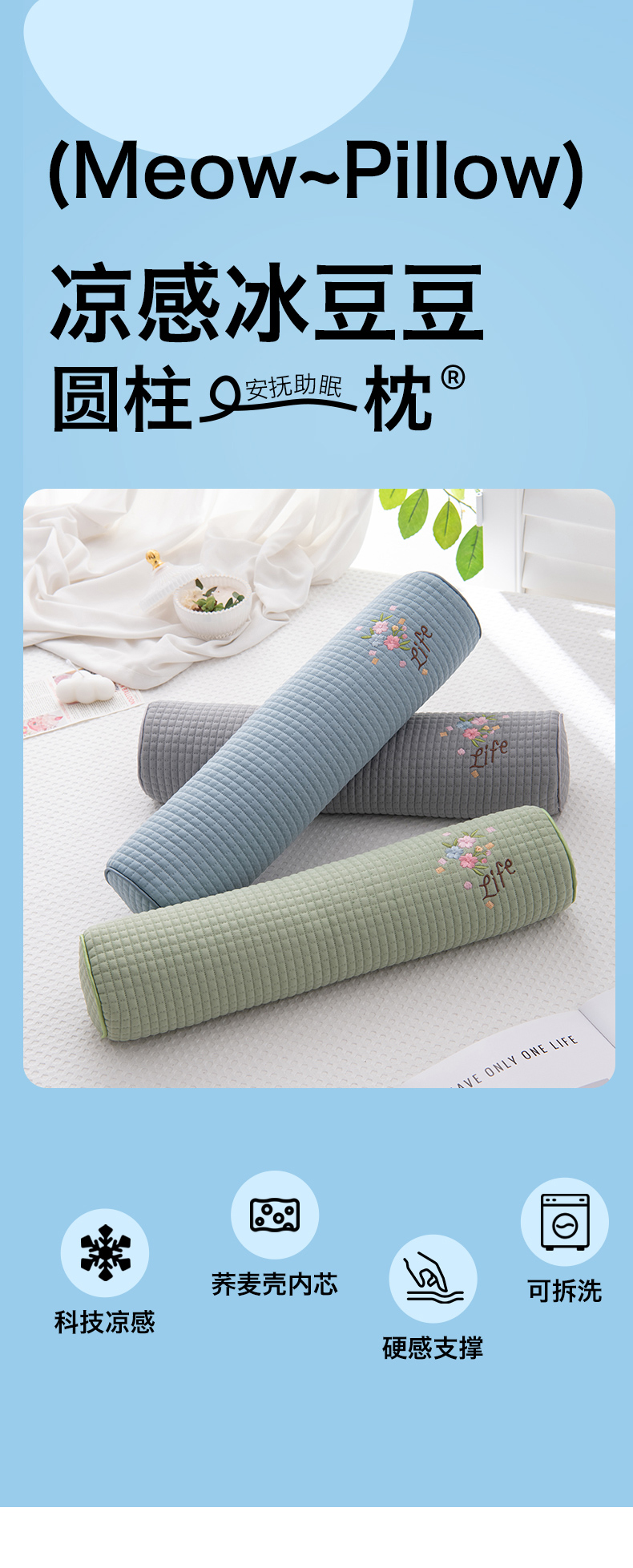 商品名称:(总)仁宇枕业 2026新款新品冰豆豆颈椎圆柱枕芯繁花系列冰丝糖果枕腰枕头枕芯