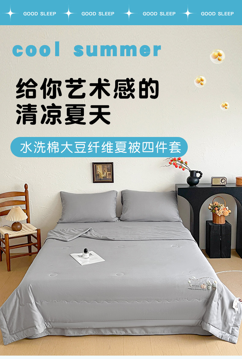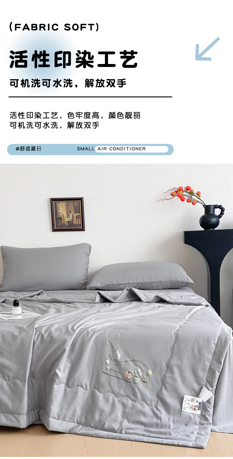商品名称:易展家居 2026新款水洗棉大豆纤维夏被-田园生活 田园生活-灰色