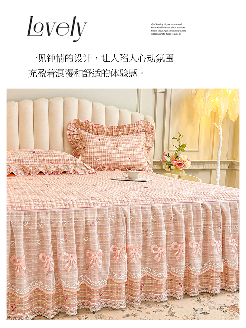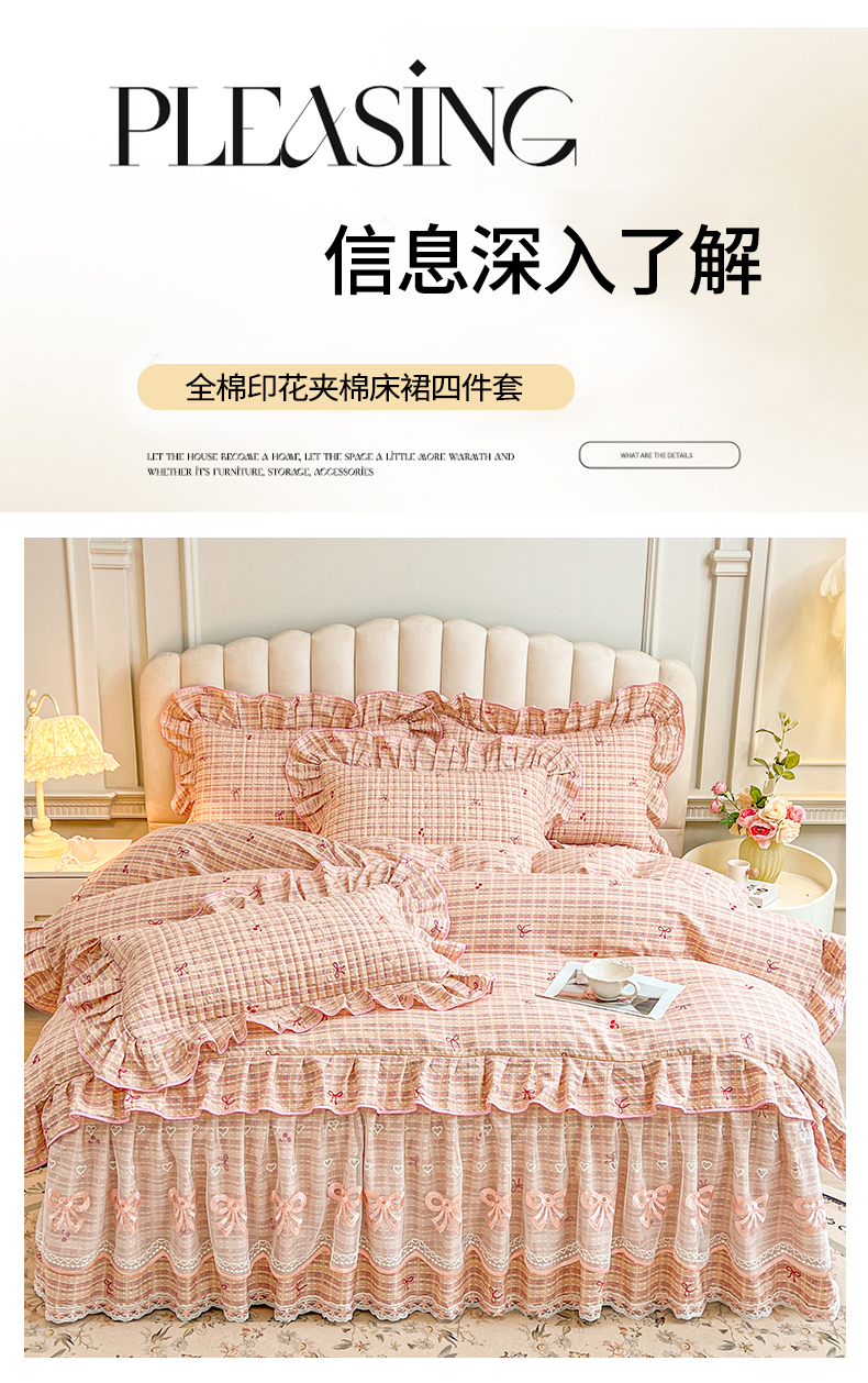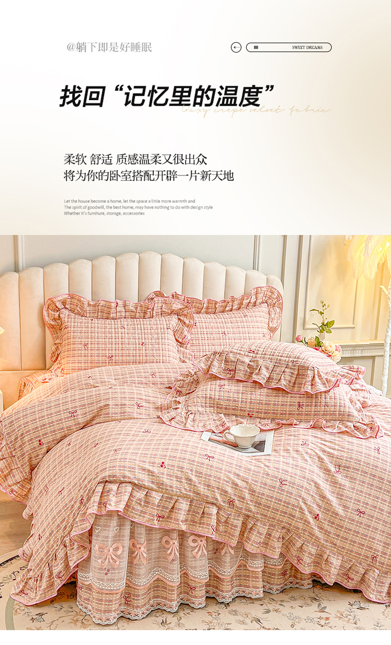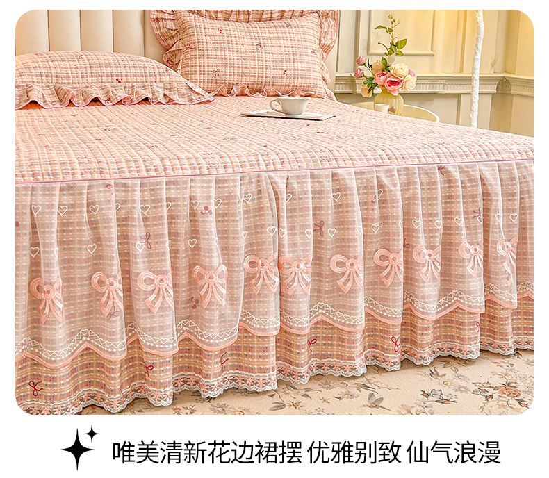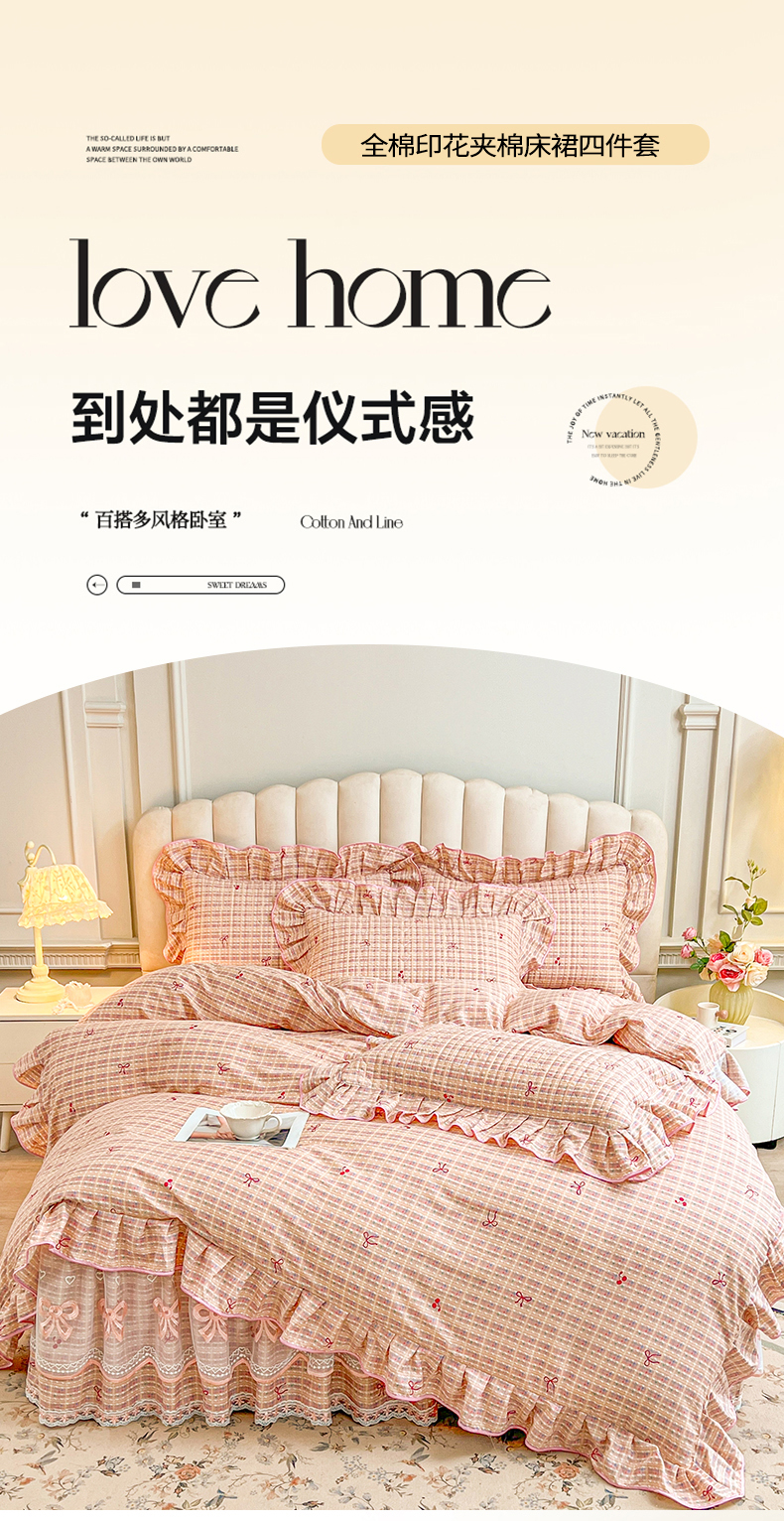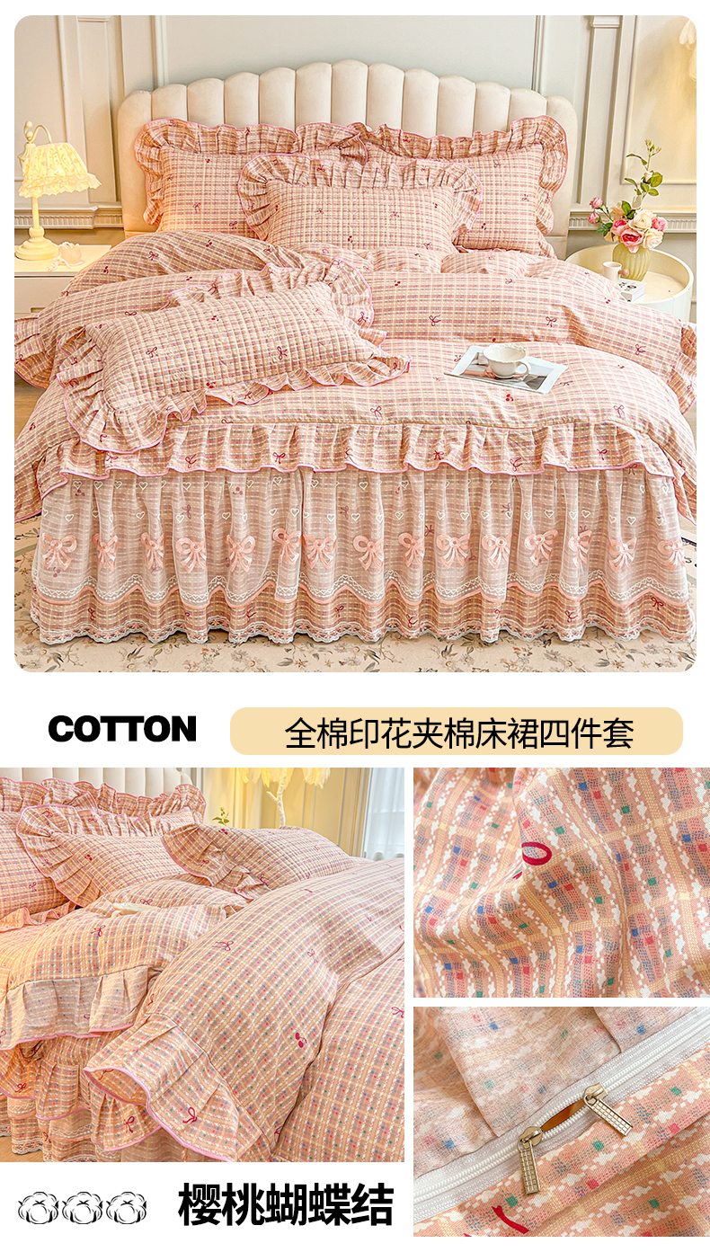 当前位置: 91家纺网 > 商品网购 > 床品套件 > 四件套 > 全棉普通四件套 > 宜凡家纺 2026新款全棉公主风夹棉床裙四件套 樱桃蝴蝶结