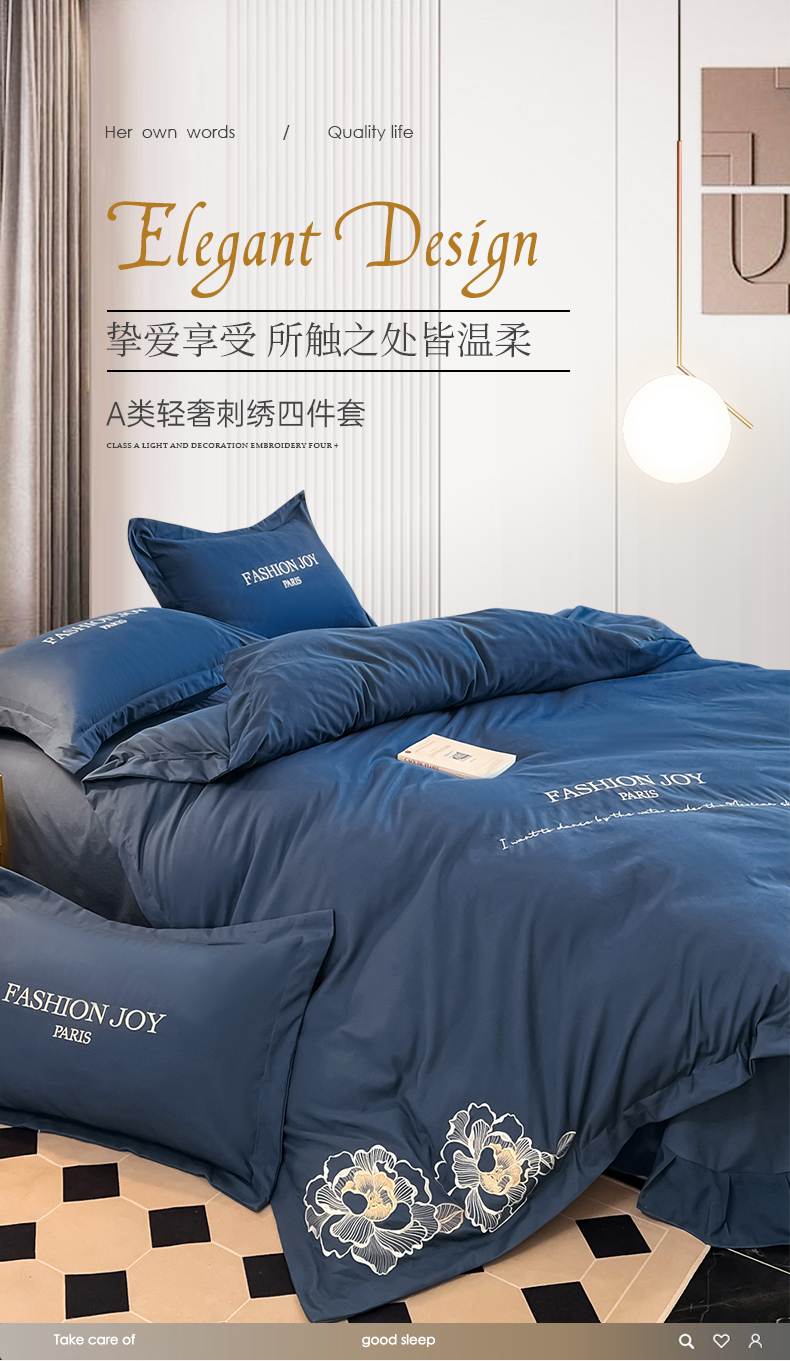 商品名称:(总)梵克保罗 2026新款直播热卖长绒棉全棉纯棉刺绣花边四件套-繁星