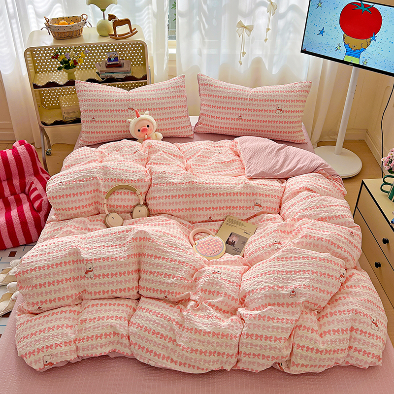 当前位置: 91家纺网 > 商品网购 > 床品套件 > 四件套 > 其它四件套 > 仟网汇 2026新款简单款泡芙纱印花四件套 抹茶梅梅