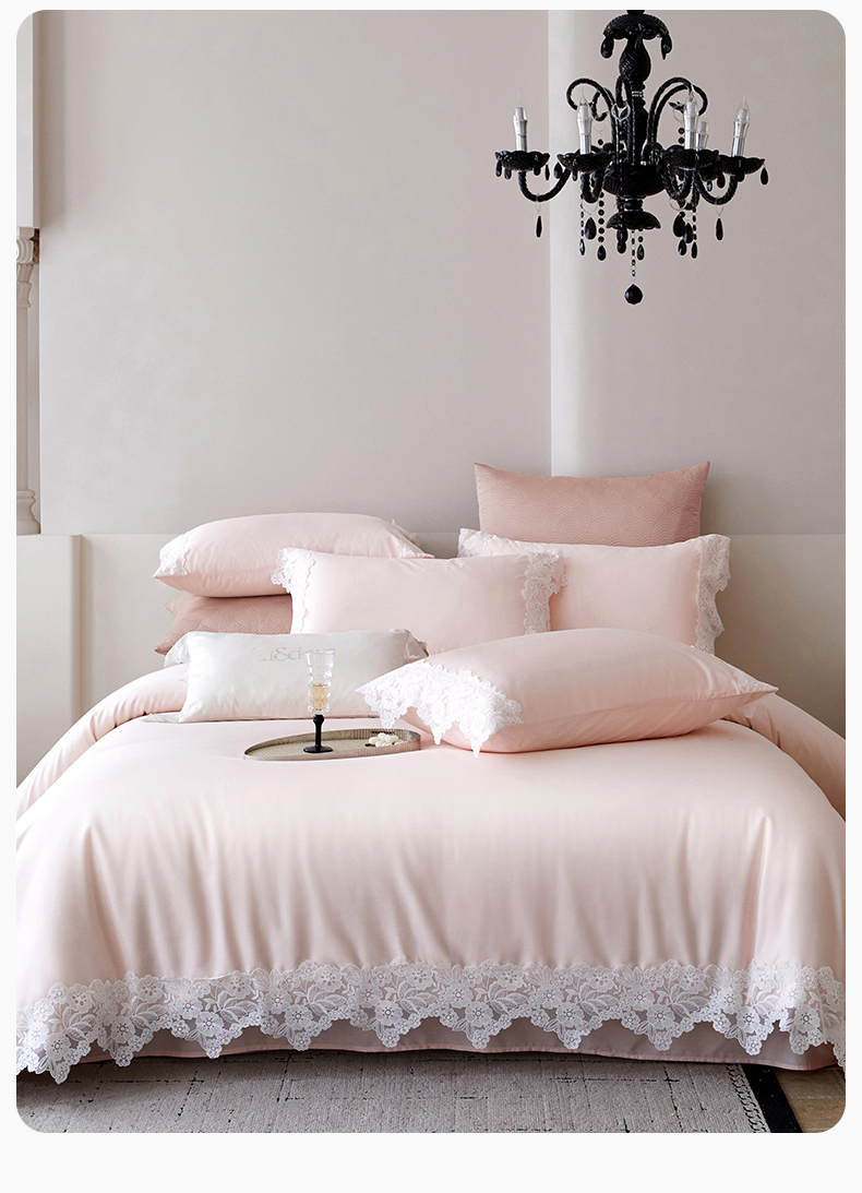 商品名称:(总)金奇达家纺 2026新款茧养丝光缎四件套-蕾丝小姐【标准号全网控价(折后券后)不低于299元 会员-40元】