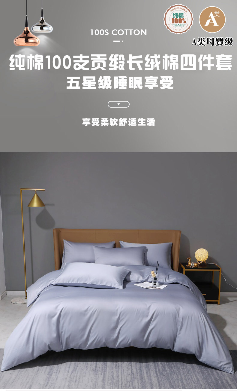 当前位置: 91家纺网 > 商品网购 > 床品套件 > 四件套 > 全棉普通四件套 > 晶缦家纺 2026新全棉A类纯棉100支贡缎长绒棉纯色多规格四件套-绮云系列 绮云-绫兰灰