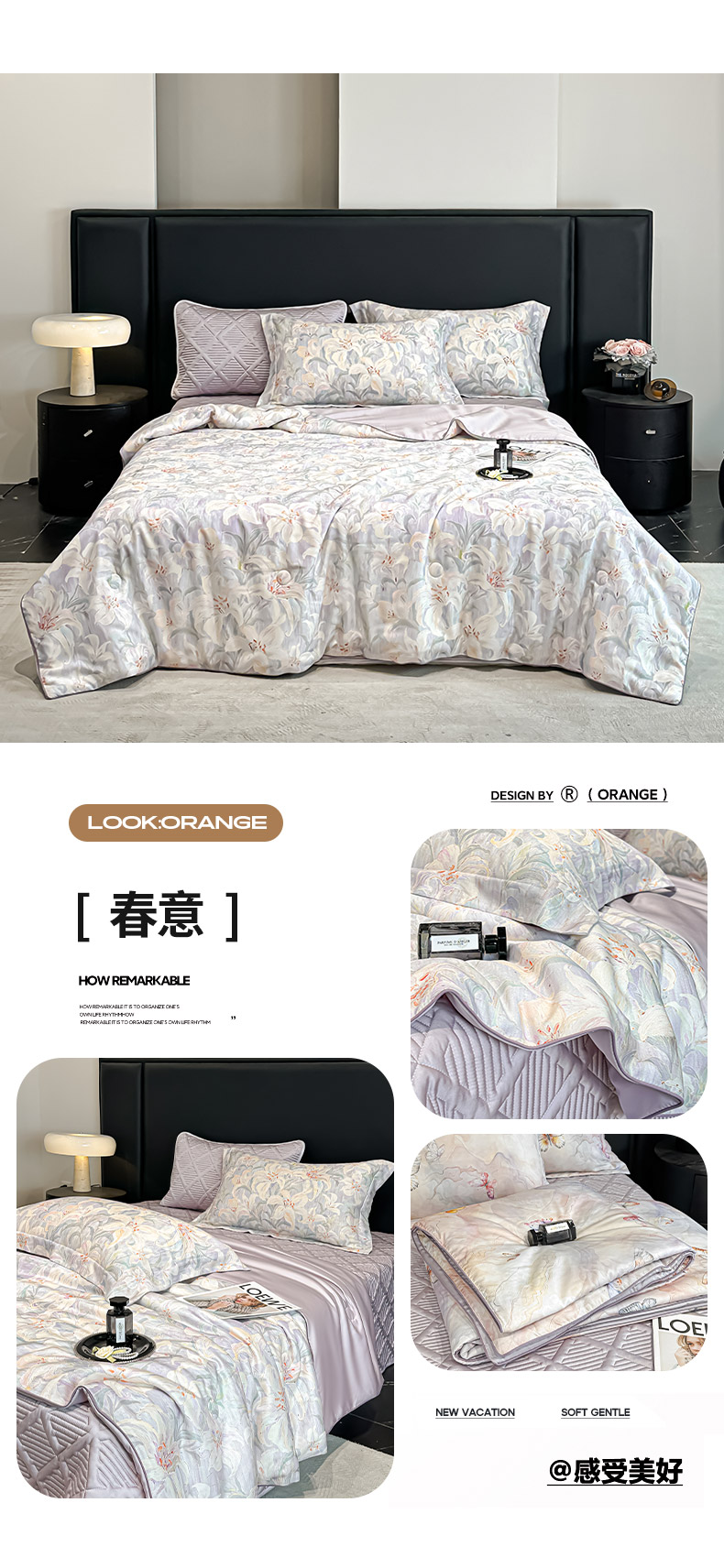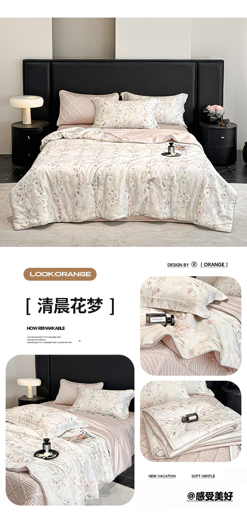 • 91家纺网 家纺一手货源 找家纺 吾诺家居 2026春夏新款数码印花莱赛尔天丝夏被夏凉被空调被-天印系列 花之梦