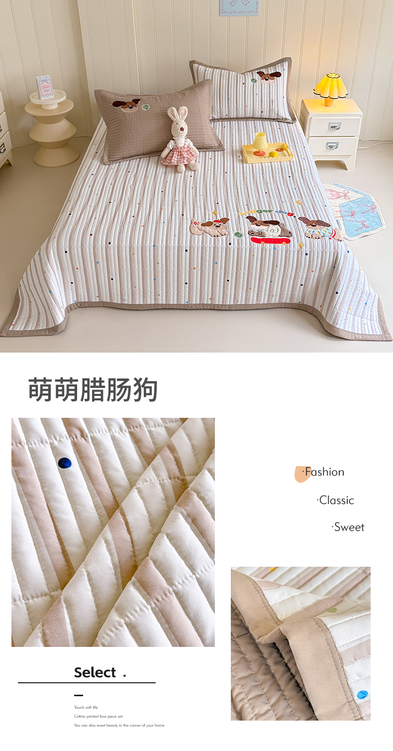 (总)优贝家纺 2026新款高克重水洗棉云感棉印+贴布绣卡通床盖夹棉软席三件套,组合图仅供展示,萌犬乐园,萌萌腊肠狗,木马小团花,甜美兔兔,熊熊乐园