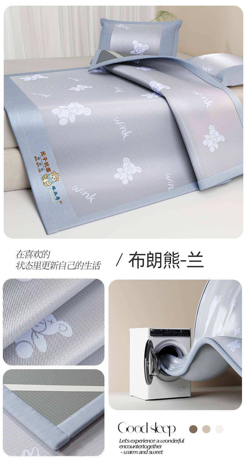 • 91家纺网 家纺一手货源 找家纺 (总)爱宝被业 2026新款凉感冰丝席三件套,布朗熊-灰,布朗熊-兰,布朗熊-绿,布朗熊-玉