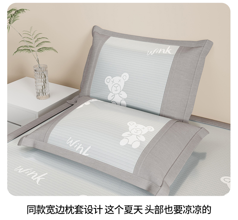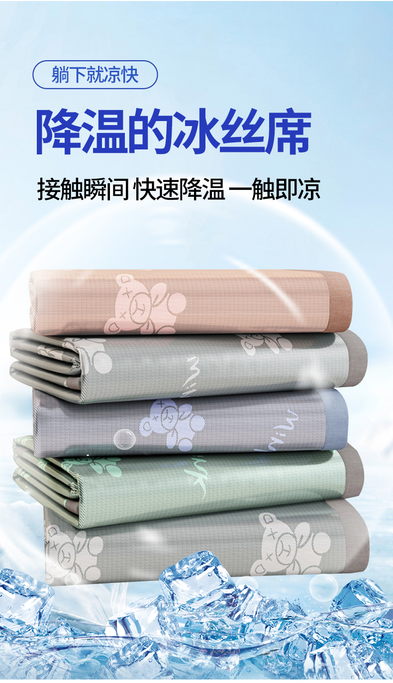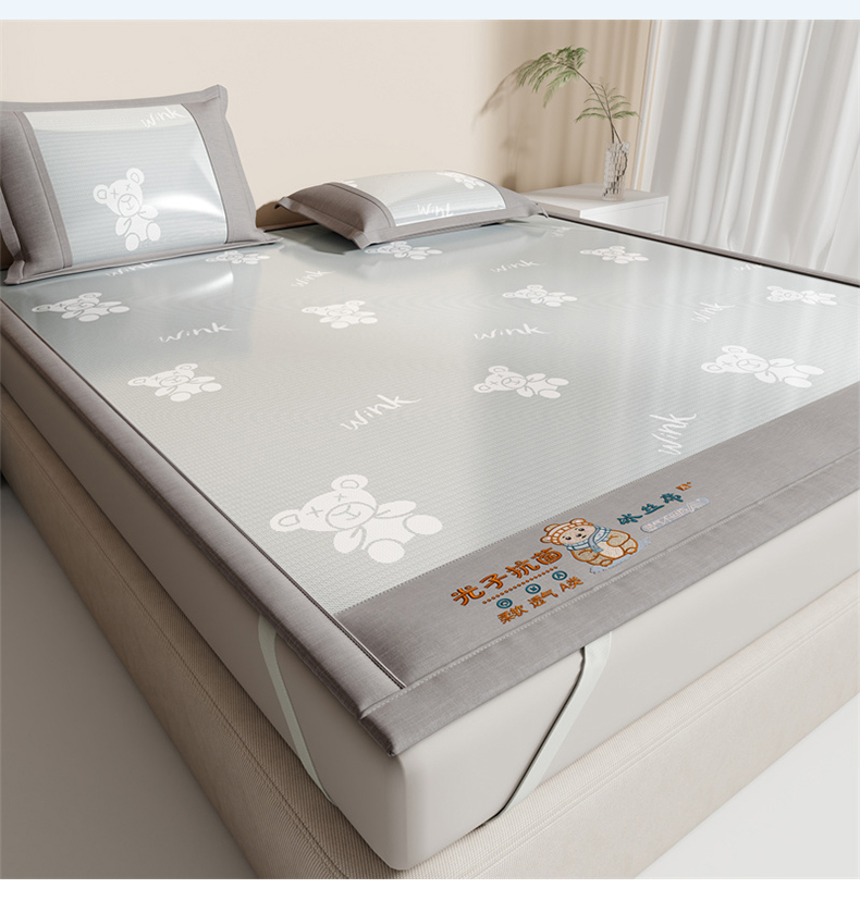 (总)爱宝被业 2026新款凉感冰丝席三件套,布朗熊-灰,布朗熊-兰,布朗熊-绿,布朗熊-玉
