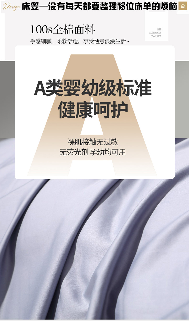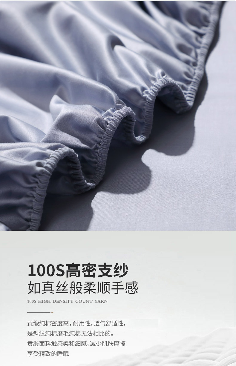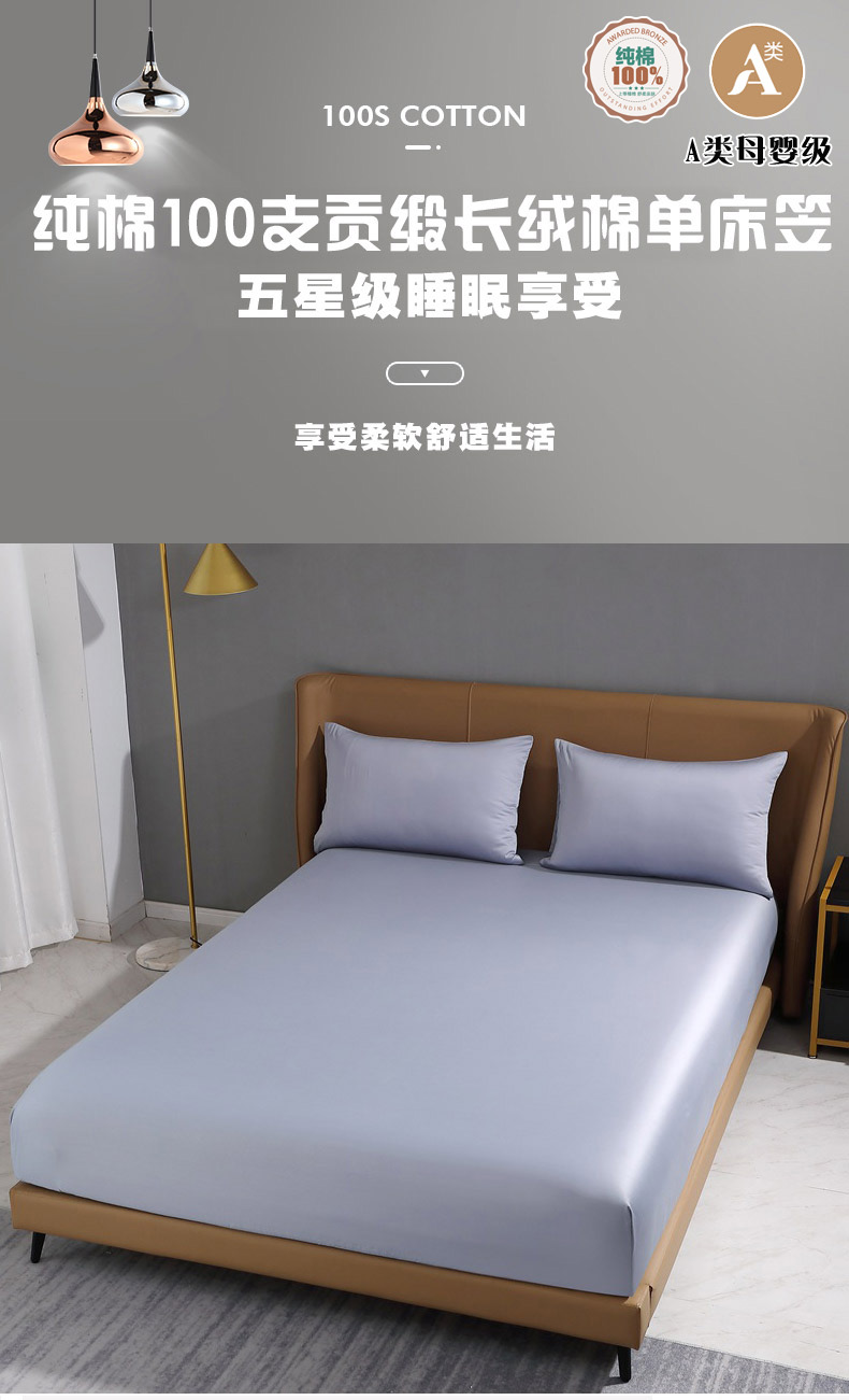 • 91家纺网 家纺一手货源 找家纺 晶缦家纺 2026新全棉A类纯棉100支贡缎长绒棉纯色多规格单床笠 床笠单件-绮云系列 绮云-绫兰灰
