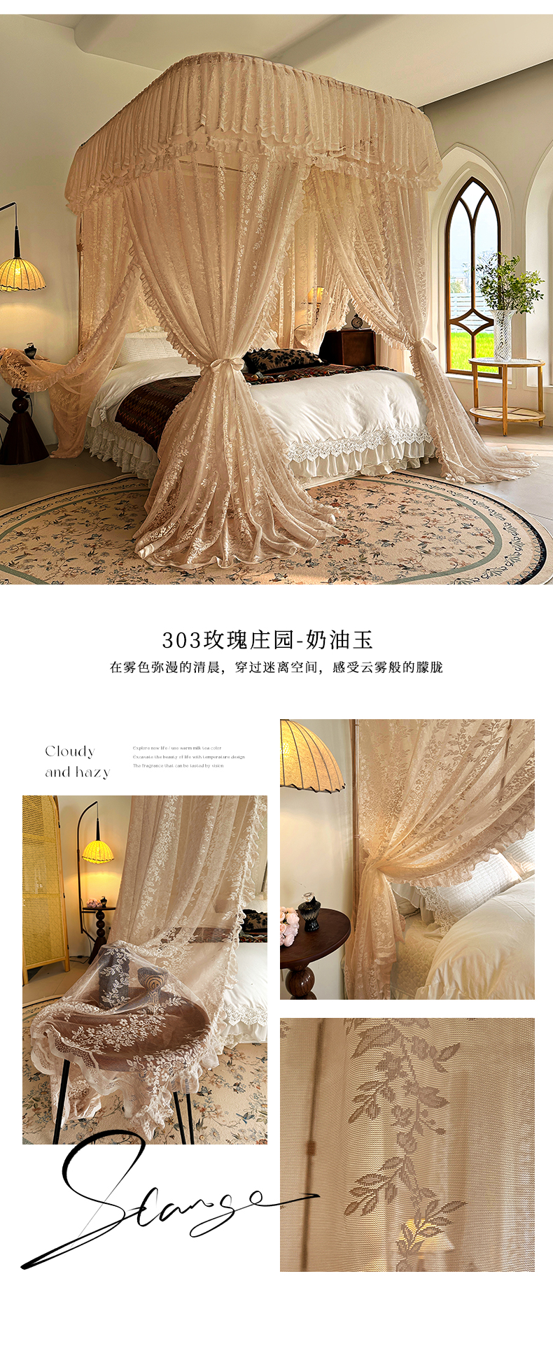 当前位置: 91家纺网 > 商品网购 > 床上用品 > 蚊帐 > 导轨蚊帐 > 都市缘蚊帐 2026春夏新款单双层豪华高端蕾丝提花款导轨蚊帐-玫瑰庄园 305玫瑰庄园奶油玉