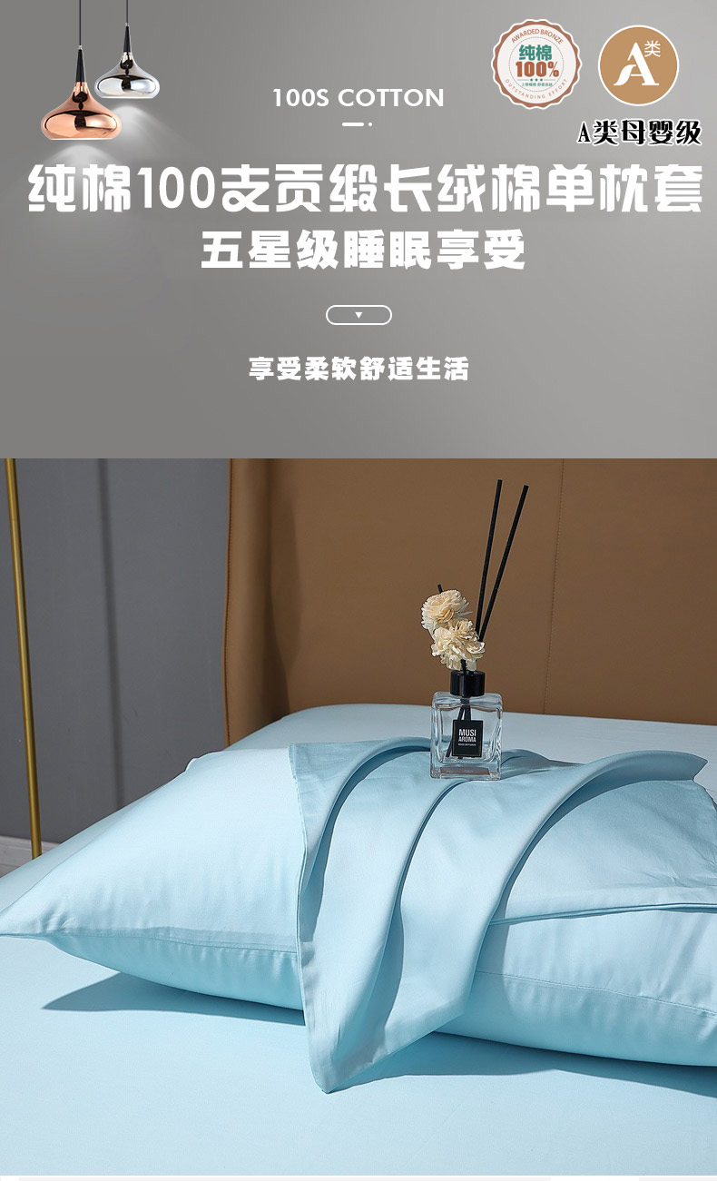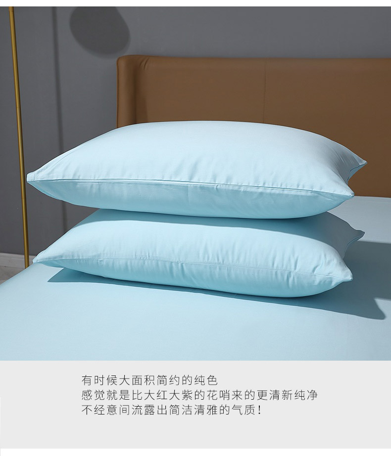 晶缦家纺 2026新全棉A类纯棉100支贡缎长绒棉纯色多规格单枕套 枕套单件-绮云系列 绮云-浅天蓝