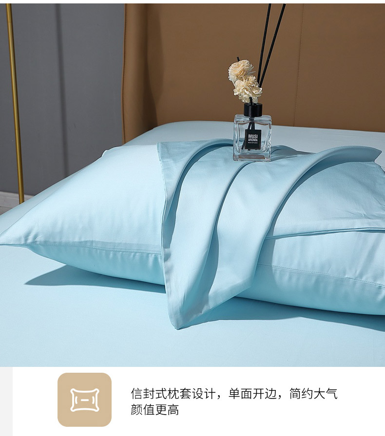 商品名称:晶缦家纺 2026新全棉A类纯棉100支贡缎长绒棉纯色多规格单枕套 枕套单件-绮云系列 绮云-浅天蓝