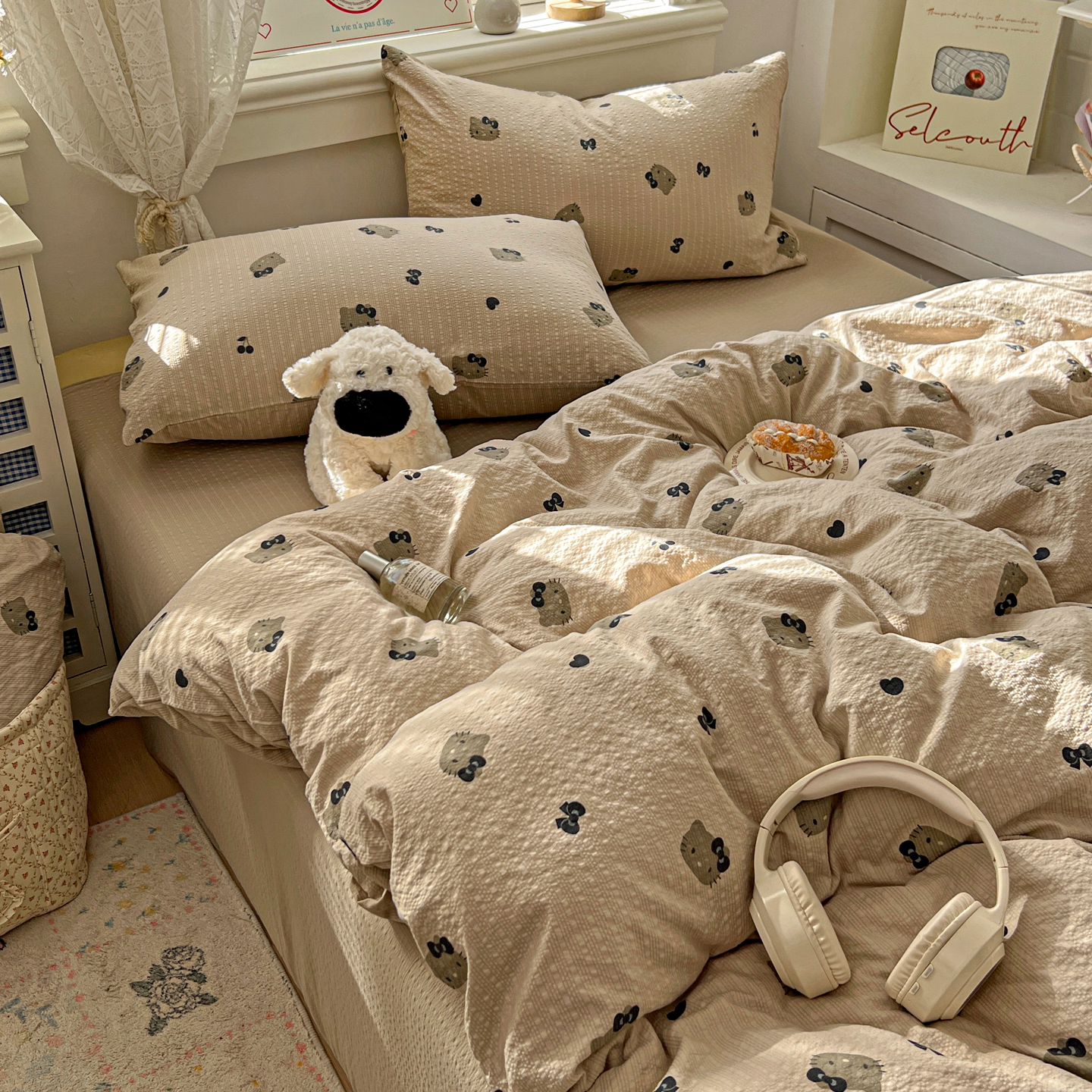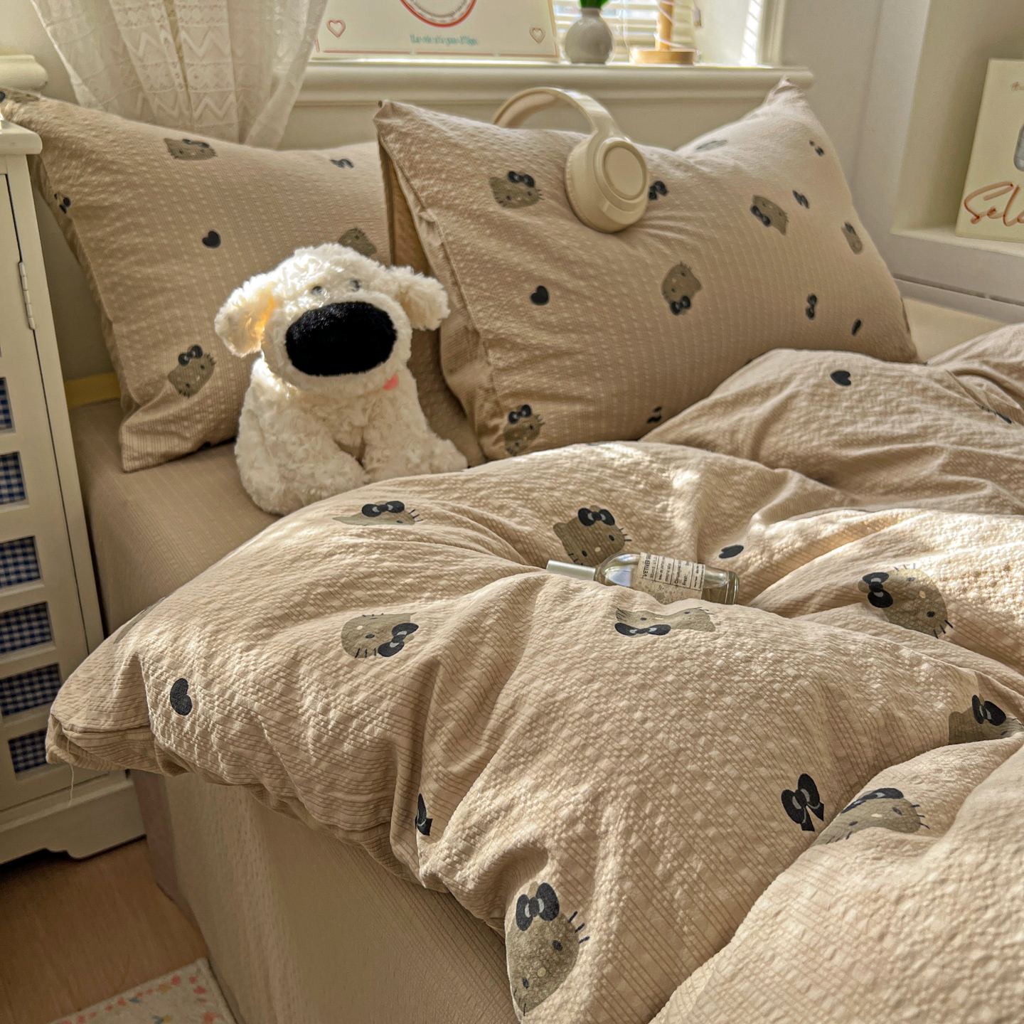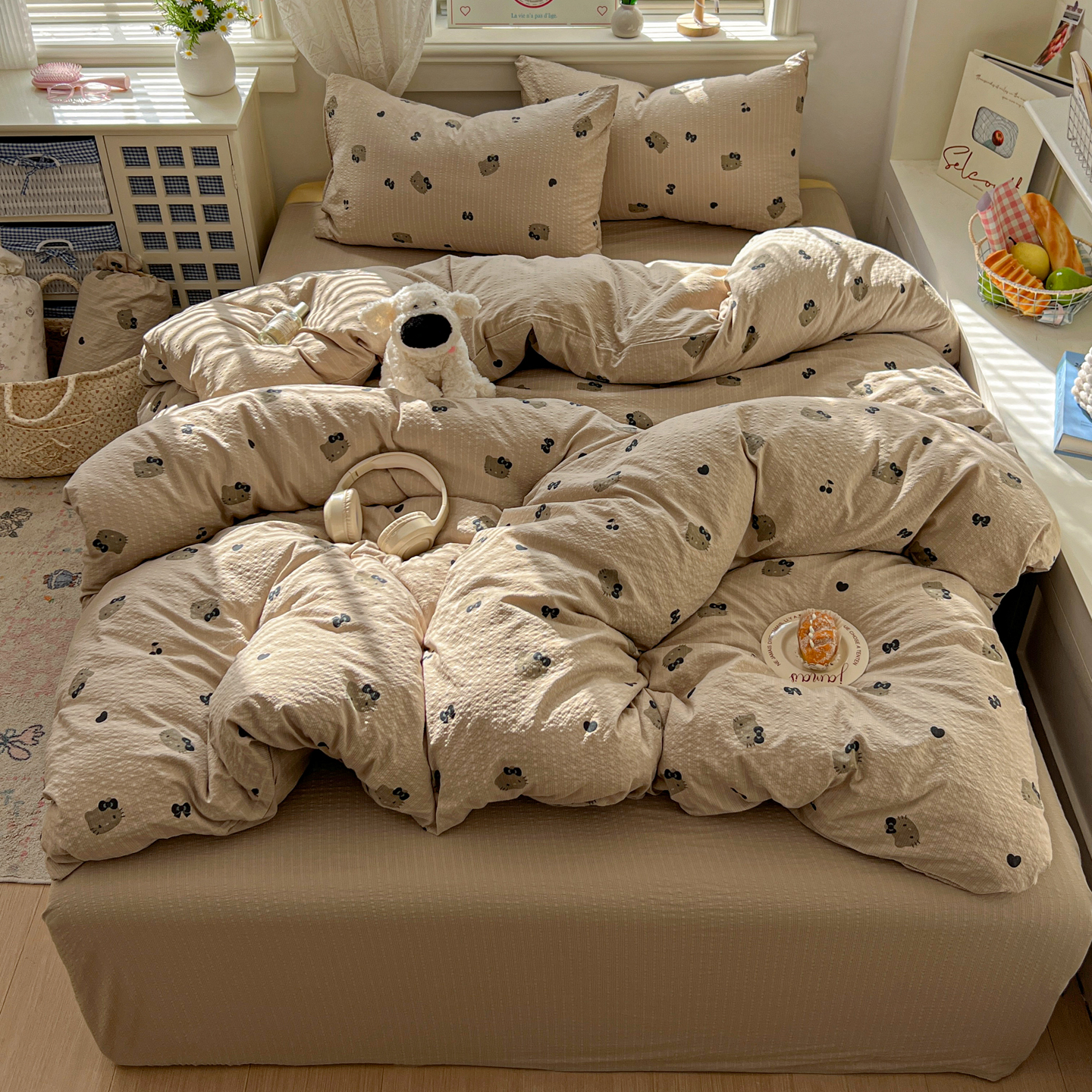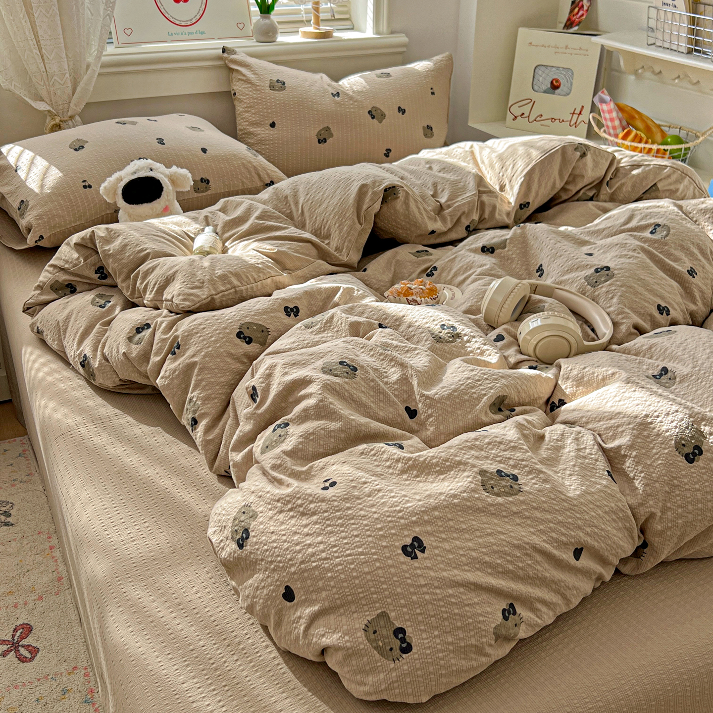 商品名称:暖伊家居 2026新款糖果小布袋泡芙纱四件套 黑皮KT