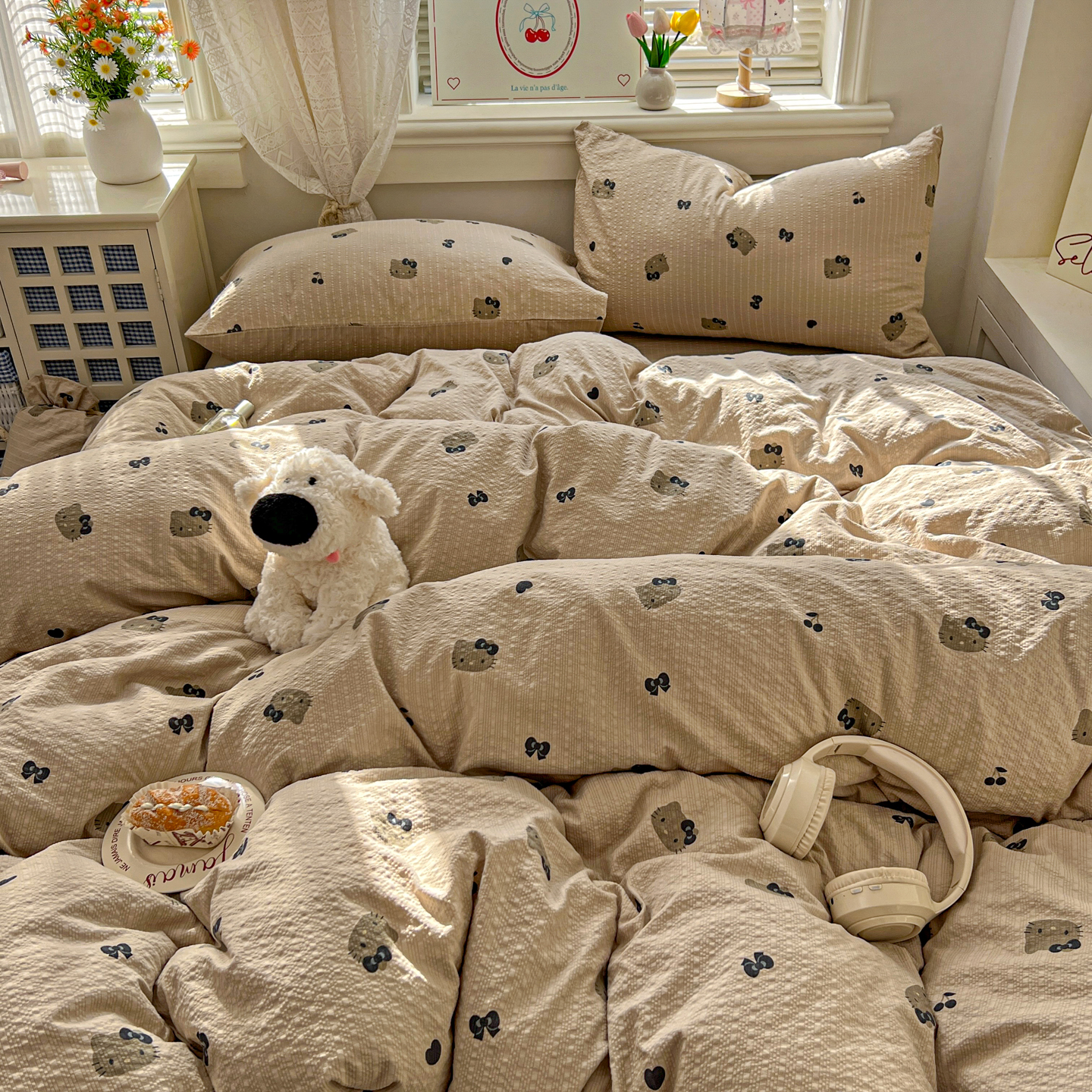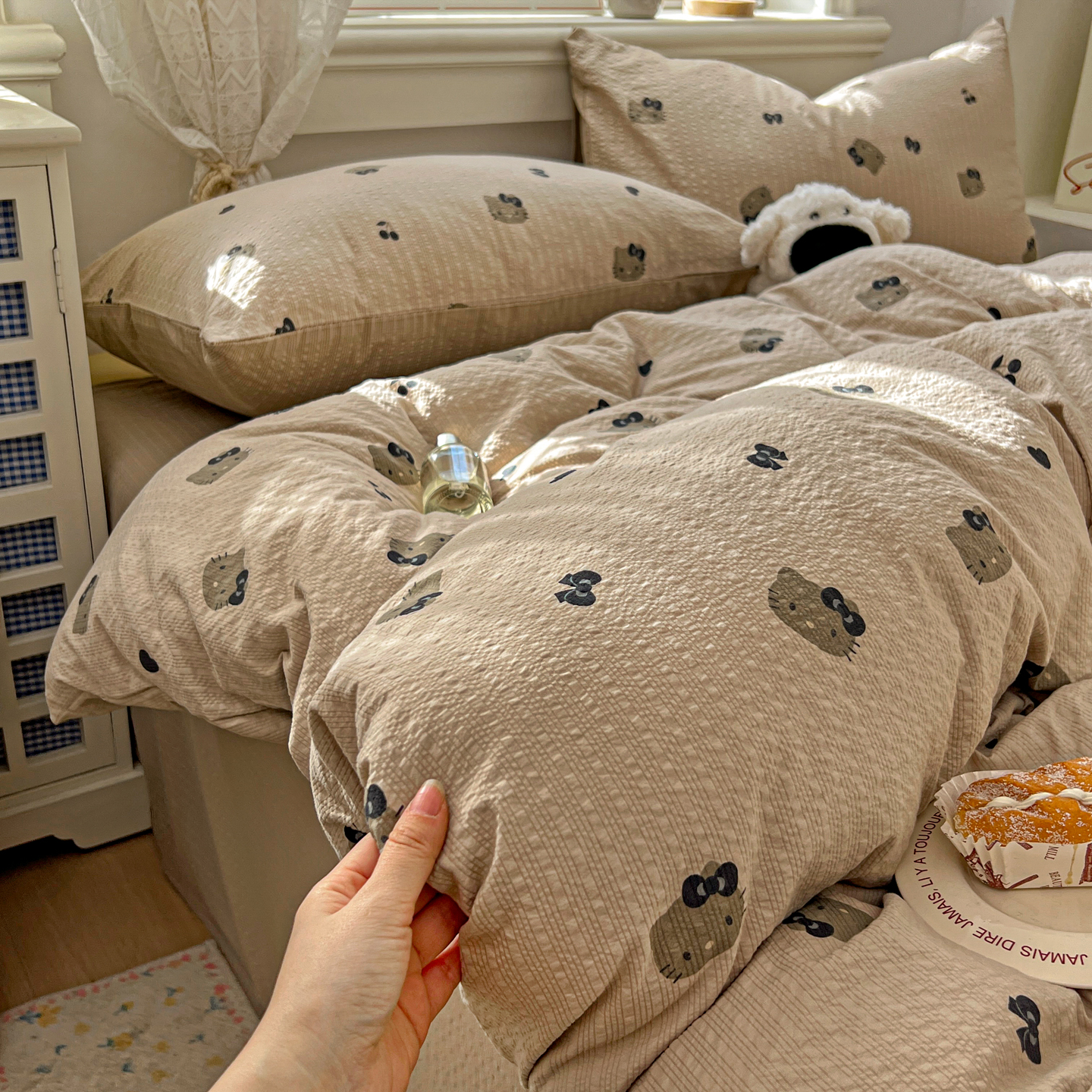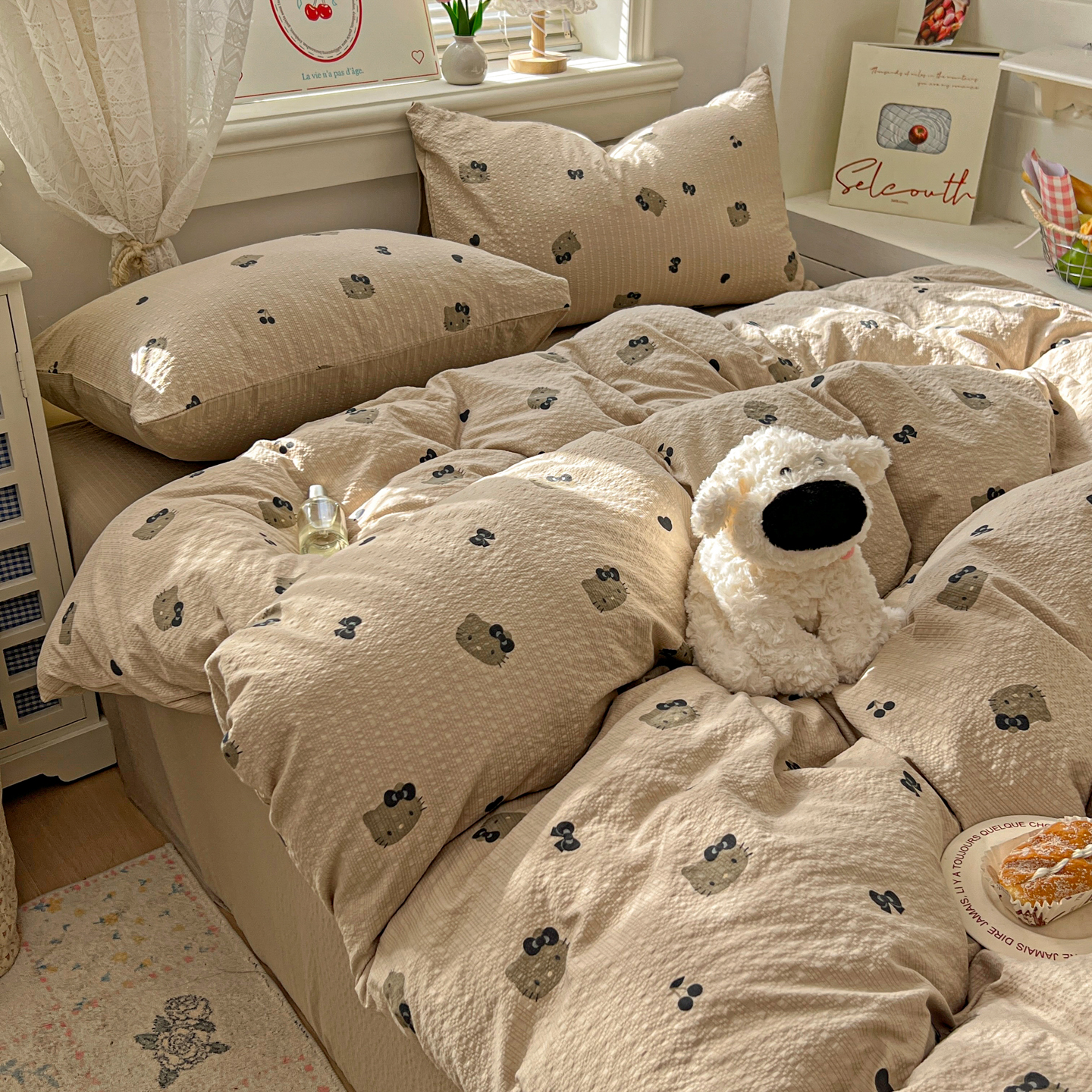 商品名称:暖伊家居 2026新款糖果小布袋泡芙纱四件套 黑皮KT