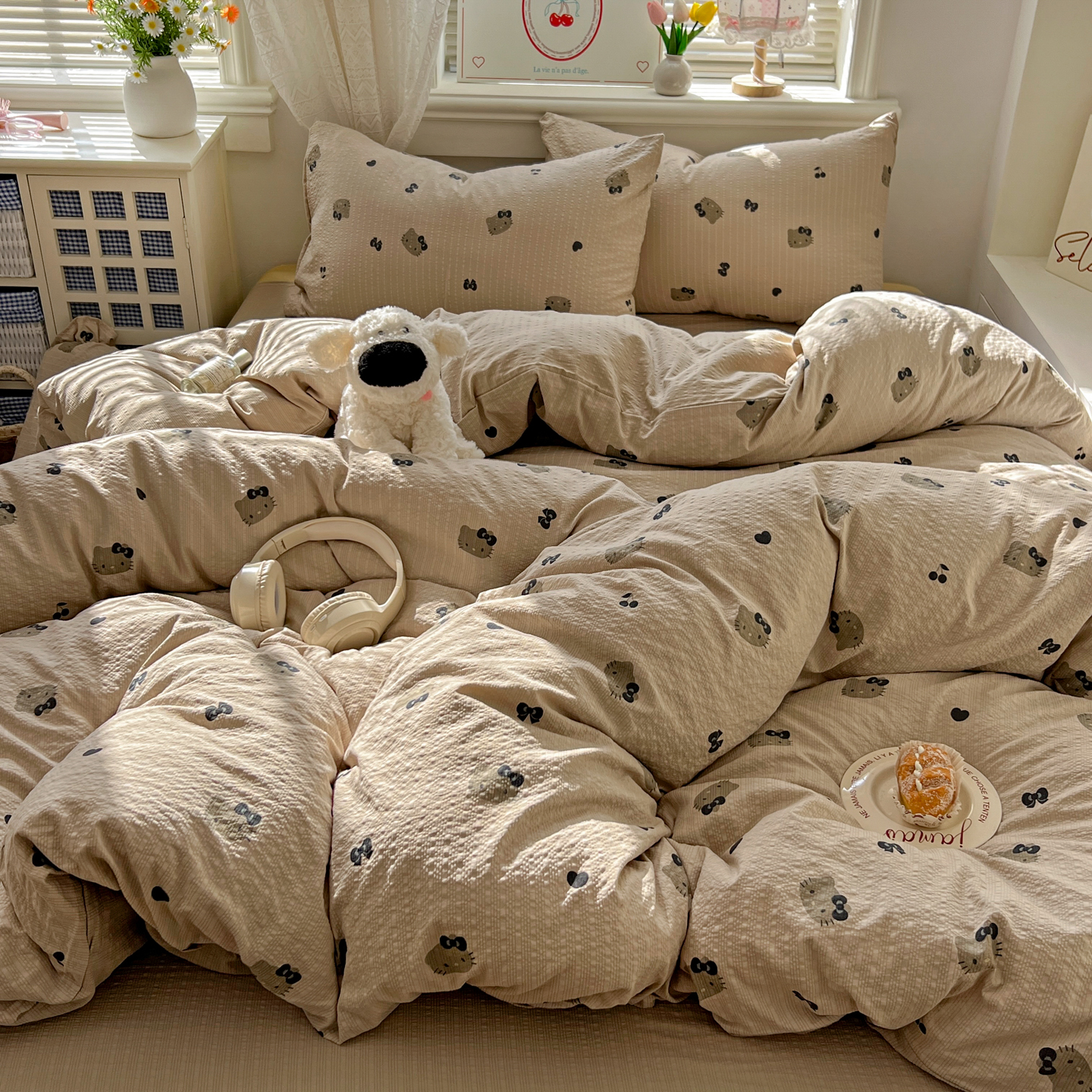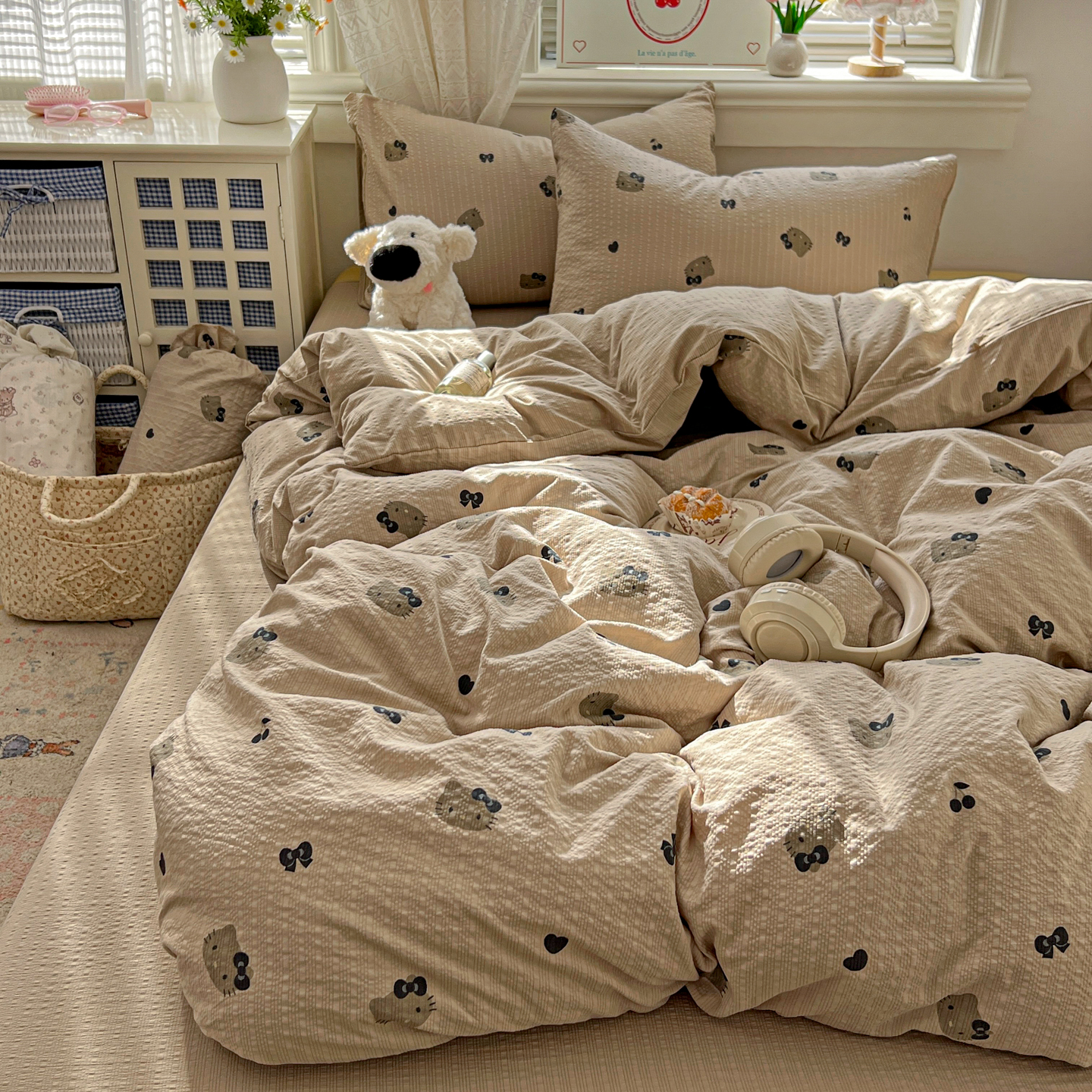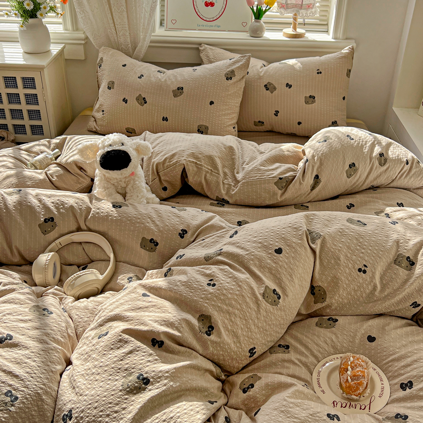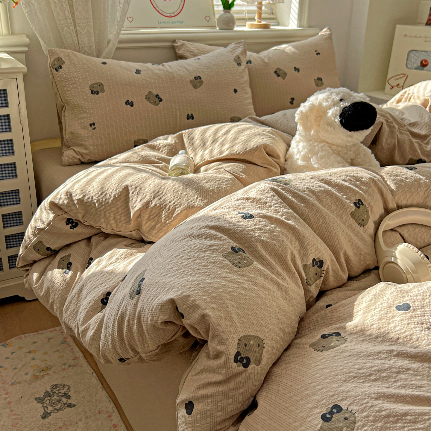 商品名称:暖伊家居 2026新款糖果小布袋泡芙纱四件套 黑皮KT
